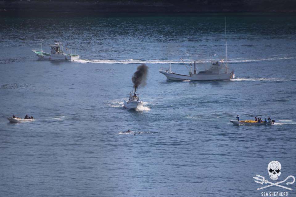 Nach 5 stündiger Hetzjagt gelang es den Mördern aus Taiji Japan eine Rissos Delfinfamile in die Bucht zu treiben und zu töten. Kurz nachdem die Delfine in der Todesbucht in Netzen eingesperrt waren, zerrten die Mörder die Delfine mit Seilen an der Schwanzflosse befestigt mit ihren Booten unter die Planen und zertrümmerten mit einem Eisenstab die Wirbelsäule der sanften Meeressäugern. Ein Delfin nach dem anderen starb einen grauenvollen schmerzhaften Tod, entweder durch ertrinken oder verbluten.