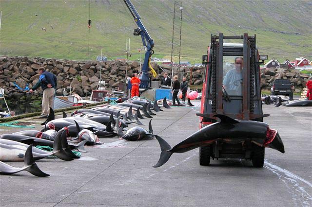 Das einzige Problem an dieser lächerlichen Aussage ist die Tatsache, dass die Färinger im August 2013 450 Weißseitendelfine abgeschlachtet haben.