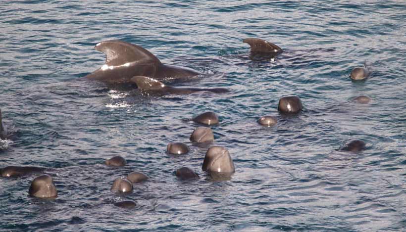 Taiji-Japan: Eine 30+ köpfige Pilot Wale Familie wurde heute Morgen in die Bucht getrieben. Viele Baybys befinden sich unter ihnen. Die Pilotwale werden über Nacht in der Bucht gefangen gehalten. Ihr Todesurteil wird am nächsten Morgen gefällt...