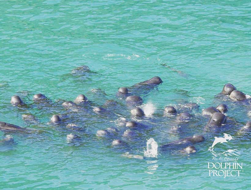 Taiji Japan, Tag 2, 13 Mitglieder der Pilotwal Familie wurden barbarisch abgeschlachtet, drei Mitglieder entführt für die Gefangenschaft in Delfinarien. Baby Pilotwale suchen verstört nach ihren getöteten Mütter.