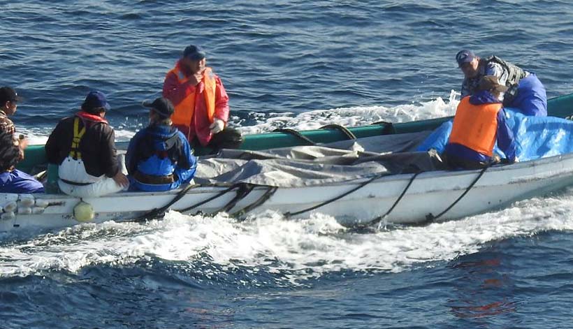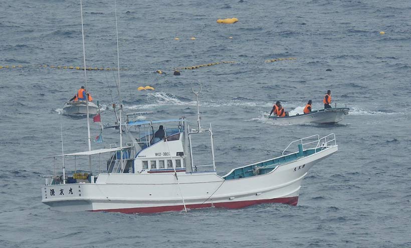 Nach weniger als einer Stunde nachdem die japanische Delfin-Vernichtungsflotte den Hafen von Taiji verlassen hatte...