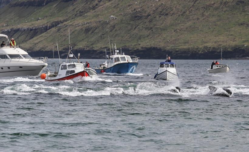 Um Mitternacht am 08/09 Mai 2018 wurden in Fjord in Hvalvik Delfine entdeckt. Sofort wurde über Funk und Radio Grindabö ausgerufen. Kurze Zeit danach tauchten mit langen Messern, Seilen und Hacken bewaffnete, blutrünstige Färöische Neanderthaler...