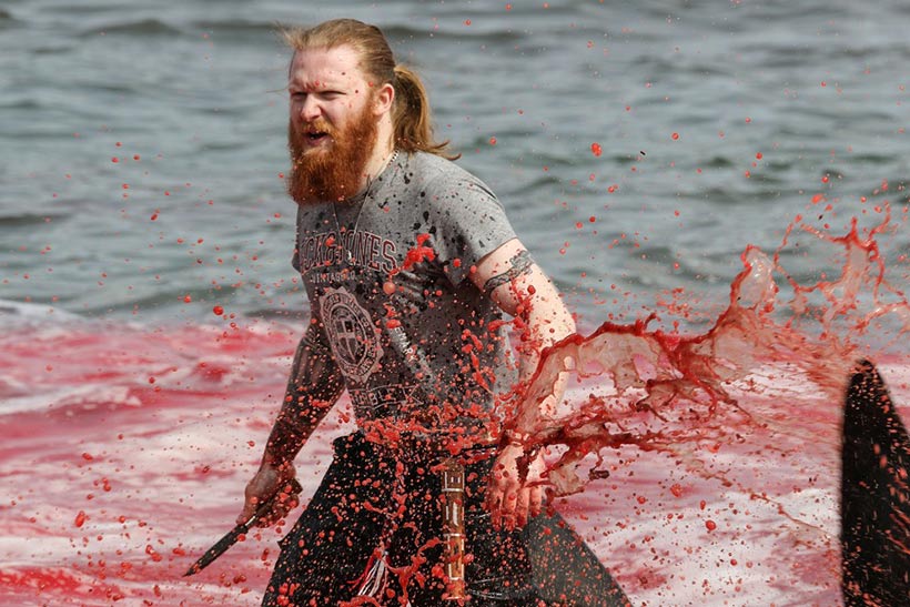 Laut Färöischen Medien wurden gestern Abend gegen 23:00 Uhr 150 Delfine (Pilotwale) ermordet. Eine Horde blutrünstiger Neandertaler, bewaffnet mit langen Messern, Seilen und Hacken, stürzte sich auf die unschuldigen Delfine. Jung und Alt nahmen am Massenmord teil.