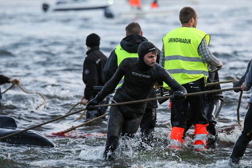 Ein Delfin wurde mehr als 3 Minuten lang gefoltert. Ein anderer Delphin, sein halber Hals war bereits tief mit einem Messer zerschnitten, lebte noch; er starb erst nach 50 Sekunden als ihm ein weiterer Barbar mit einem Pfeil durch die Offene Wunde die Wirbelsäule durchstach. Insgesamt war diese Schlachtung, wie jede andere Delfinschlachtung auf den Färöern auch, extrem grausam und schmerzhaft für die Delfine.