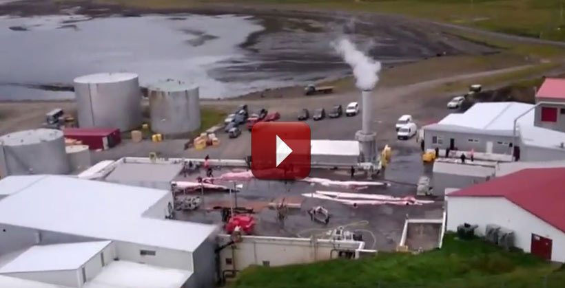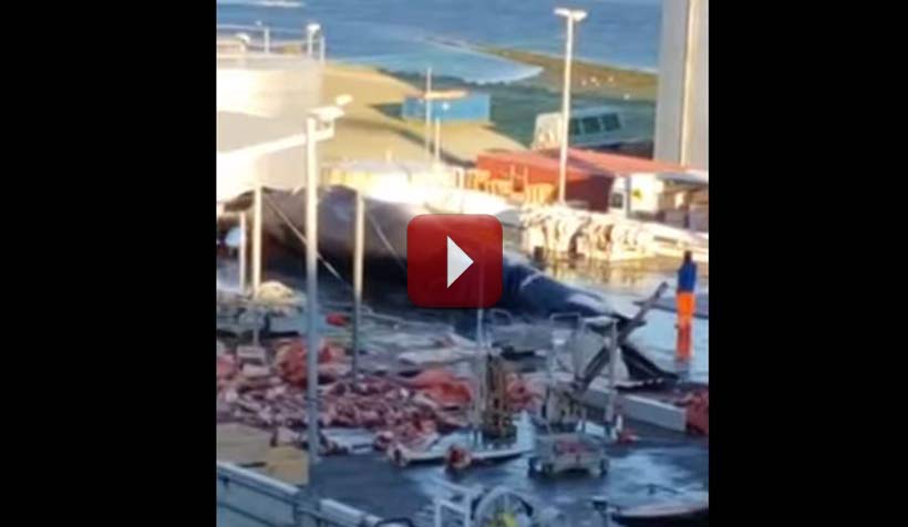 Das Walfangschiff Hvalur 8 des isländischen Millionärs Kristian Loftsson ist mit zwei illegal harpunierten vom Aussterben bedrohten Finnwalen Nummer 66 und 67 ind die Walfangsaison zurückgekehrt, die in der isländischen Walfangsaison nun auf dem Slipway der Hvalur-hf-Walfangstation in den Schlachtbereich gezogen werden.