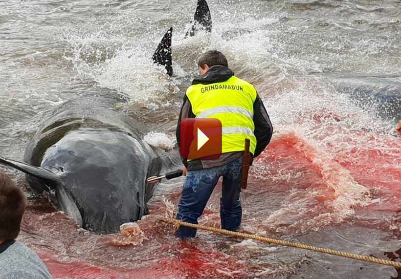 5. September 2018 - Eine kleine Gruppe Pilotwale wurde mit ca. 16 Motorboote über 3,5 Stunden verfolgt und zum Stranden nach Bøur getrieben; um ihnen durch schmerhafte, brachiale Gewalt Sender anzubringen...