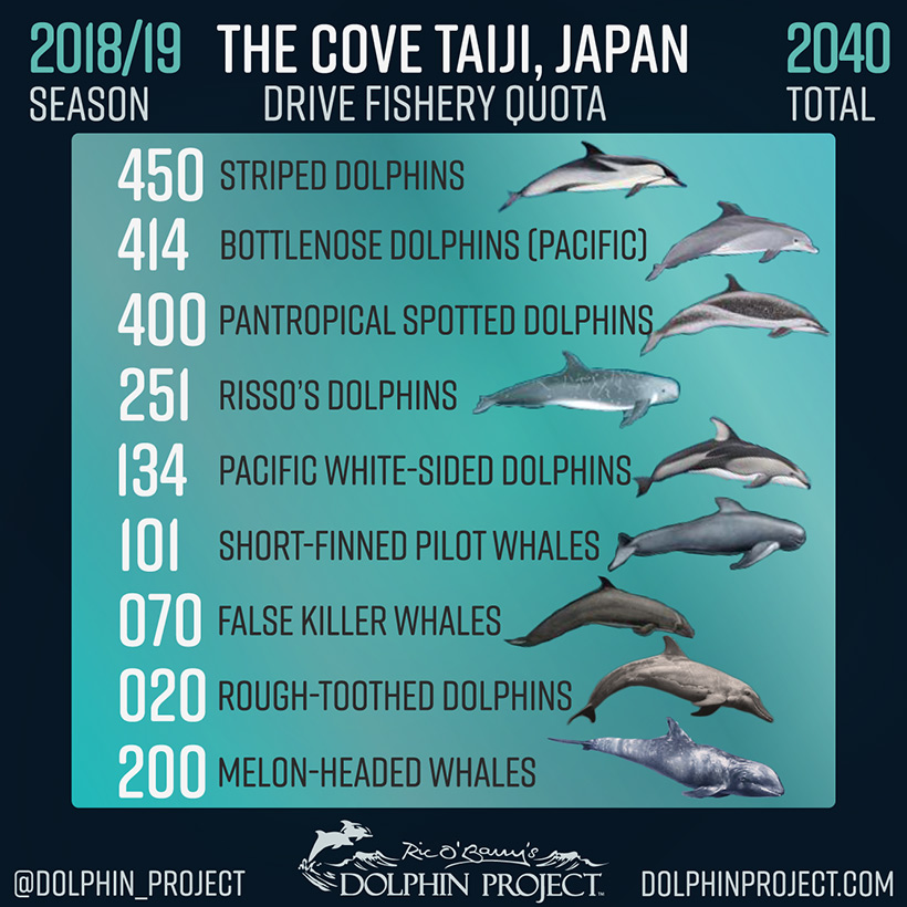 2040 Delfine sind auf der Todesliste der japanischen Regierung, für Entführungen zum Verkauf an Delfinarien oder barbarische Tötung - Schädlingsbekämpfung im Namen der Fischereibehörde Japans...