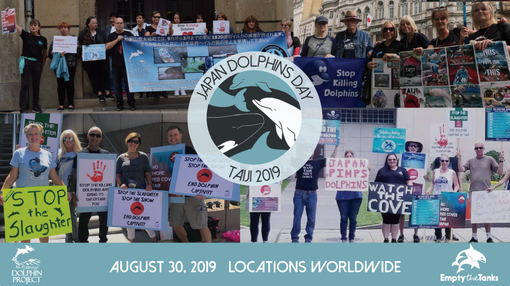 Aktivisten auf der ganzen Welt nehmen an den friedlichen Demonstrationen teil um die Öffentlichkeit aufzuklären und internationalen Widerstand gegen die unmenschlichen Treibjagden zu zeigen. Wir hoffen, dass Sie und / oder Ihre Organisation am 30. August oder um den 1. September 2019 mit uns den Japan Dolphins Day feiern.