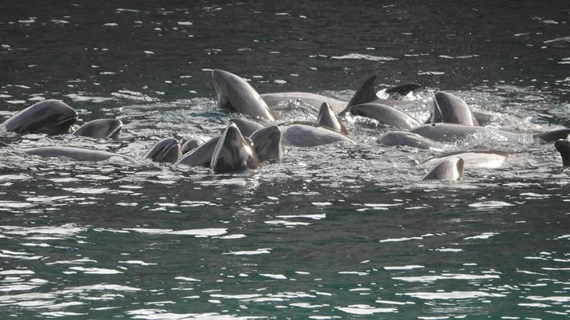 Einige kleinere Delfine und mindestens zwei Babys wurden in dieser Familie gesichtet