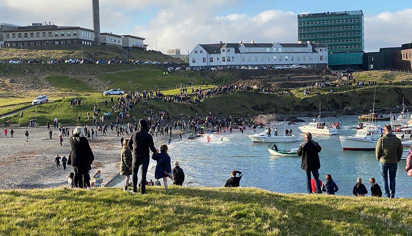 Berichten der färöischen Medien zufolge, wurde eine Delfinfamilie zwischen 20 und 30 Pilotwalen in der Nähe von Haralssund gesichtet. Die Delfinfamilie von schätzungsweise 30 Pilotewalen...
