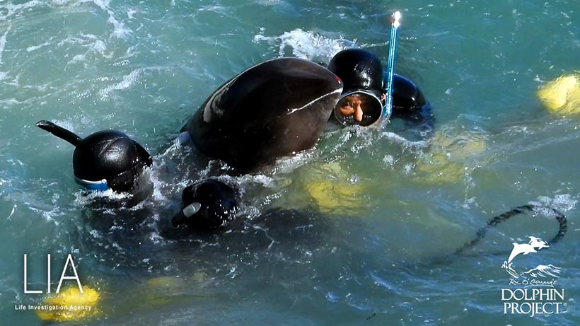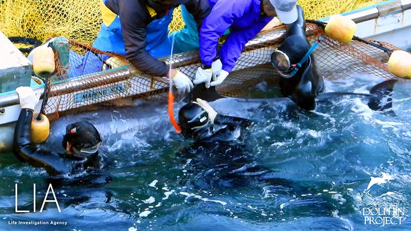 Der Verkauf lebender, entführter Delfinkinder an Meeresparks, Delfinarien, Aquarien und das Schwimmen mit gefangenene Delfinen finanziert das Massenschlachten in Taiji , um Delfine aus den Ozeanen durch Tötung, genannt Schädlingsbekämpfung, zu entfernen, wegen der Fischereiindustrie. Fleisch ist nicht der Grund für die Tötung von Delfinen und Walen. Delfinfleisch ist ungenießbar und stark mit Umweltgiften belastet.
