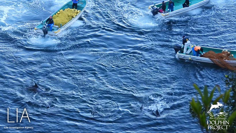 Innerhalb von wenigen Stunden nach Verlassen des Hafens, entdeckte die Delfin-Jagd-Flotte der Mafia von Taiji eine Herde Breitschnabeldelfine. Ren berichtete, dass es sich bei den 11 in die Bucht terrorisierten Breitschnabeldelfinen hauptsächlich um Mütter mit Kindern handelte...
