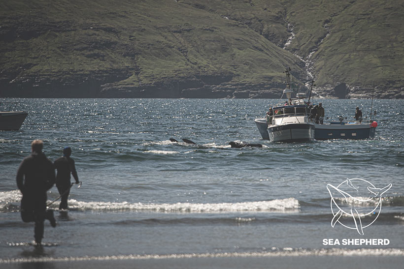 Am Abend des 24. Mai 2022 gegen 20 Uhr, sichteten die Färöer eine Pilotwal Gruppe in Víkarfjörður, Suðuroy. Es scheint so, dass es den Färöern dann gelungen ist, entweder absichtlich (angesichts der internationalen und sogar färöischen Empörung über die Tötung von 1428 Delfinen am 12. September letzten Jahres) oder einfach durch Zufall, einige atlantische Weißseitendelfine von den Grindwalen (Pilotwalen) zu trennen...