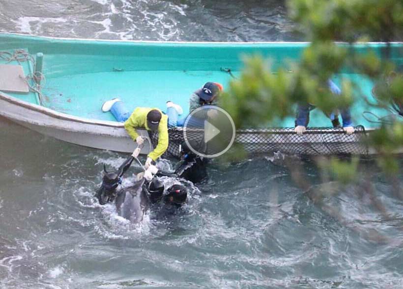 Die unmenschlichen Misshandlungen haben nun begonnen. Delfine verfangen sich in den Netzen, die meisten Delfinbabys sind ertrunken. 25 Delfine wurden für die Gefangenschaft gestohlen und in die Schwimmkäfige im Hafen überführt. Es war eine Art Wrestling wie die Trainer und Taucher die Delfine misshandelten.