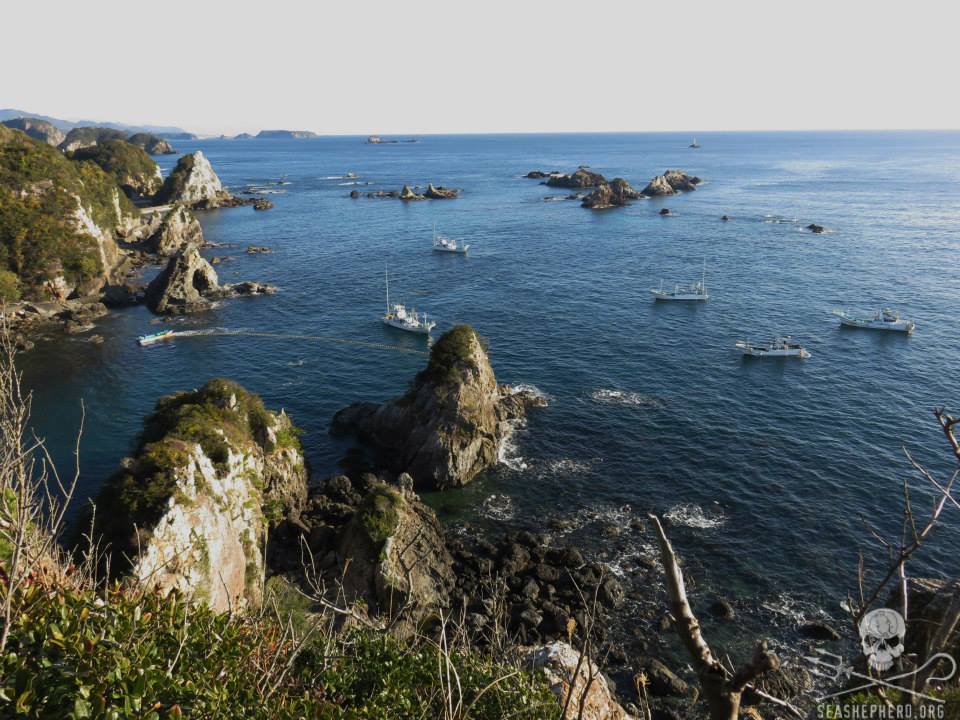 Alle 12 der Mörder-Boote verliessen heute Morgen den Hafen um eine neue Delfinfamilie zu jagen. Bald entdeckten sie eine Familie Rundkopfdelfine von ca. 23 Familienmitgliedern. Es gelang den Mördern 8 von ihnen in die Bucht zu treiben.