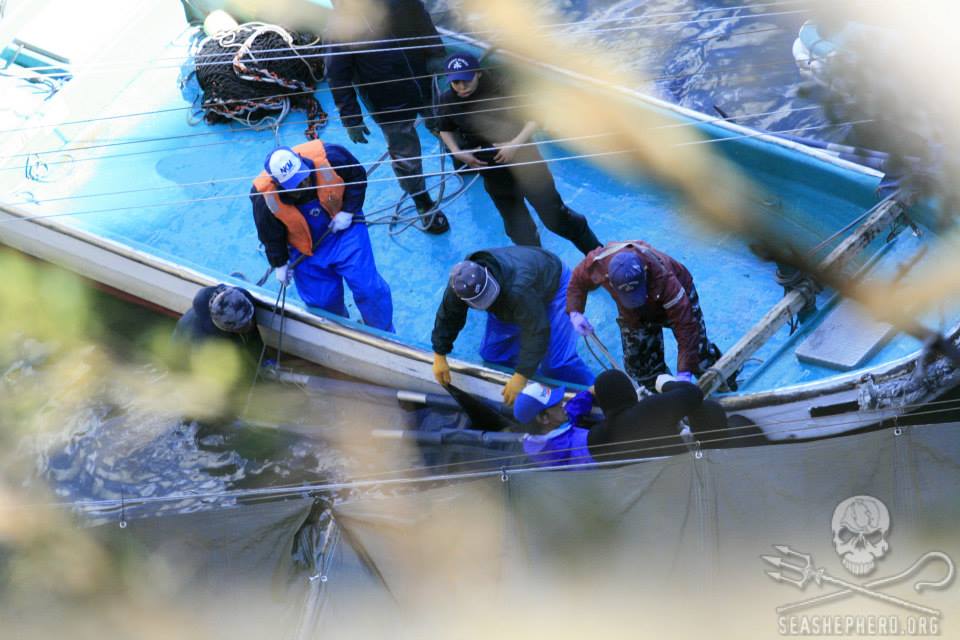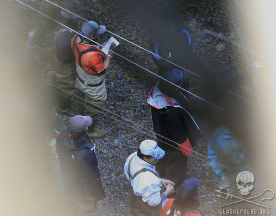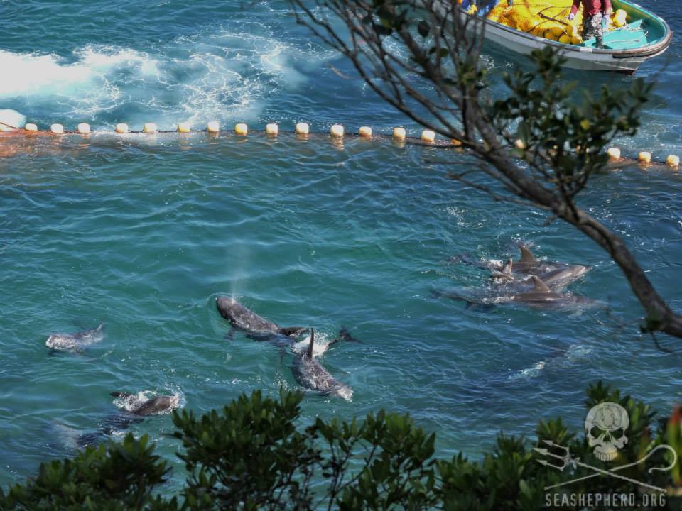 Erschreckende und beschämende Zeichen der Gier und Selbstsucht zeigten heute Morgen die Delfinmörder in Taiji-Japan während der wilden Jagt der Delfin Gefangennahme. Bezeugt und dokumentiert durch das Boden-Personal-Team der erfahrenen Freiwilligen Sea Shepherd Cove Guardians.
