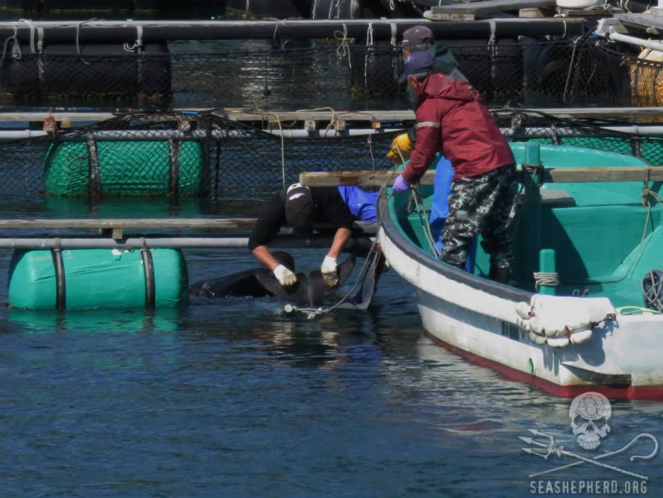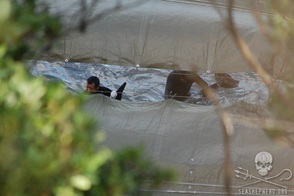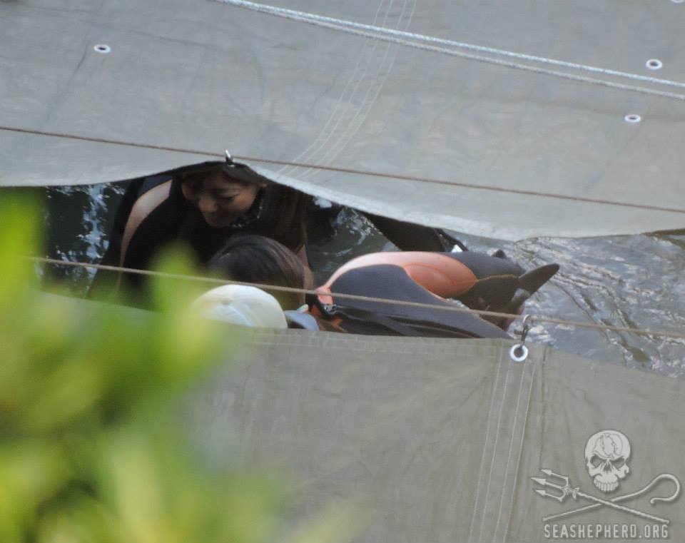 Die Cove Wächter Team dokumentierten die Entführung live an verschiedenen Orten in Taiji. Drei Delfine wurden in die Gefangenschaft in die Dolphin Base im Dolphin Resort Hotel überführt, die anderen zwei in die Schwimmkäfige im Hafen von Taiji.