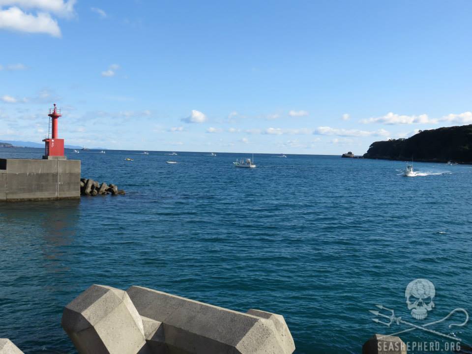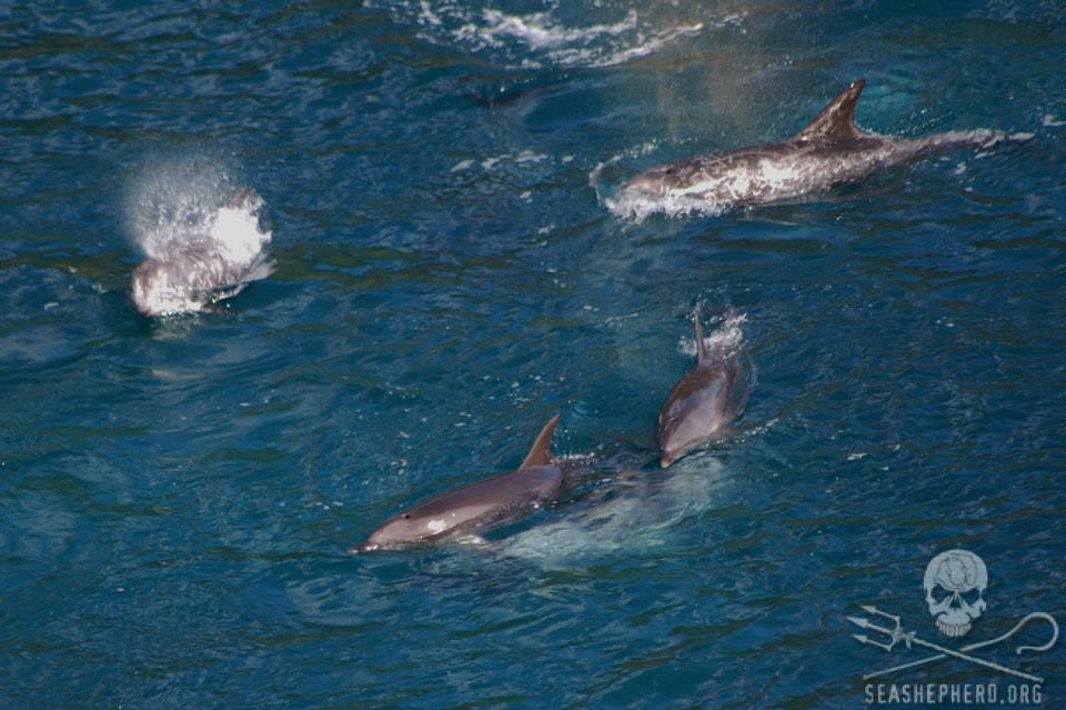 In ihrer arroganten Machtposition des Wahnsinns und eklatanten Missachtung des Lebens trieben die Mörder die sechs verwirrten, verängstigten und erschöpften Risso‘s Delfine wieder mit der gleichen Jagt Methode in den Ozean zurück, nachdem sie unnötig in die Tötungsbucht getrieben, gefangen gehalten und gequält wurden. Die Quote für das Abschlachten von Risso‘s Delfinen ist ausgeschöpft, daher war es unnötig diese Delfine zu jagen.