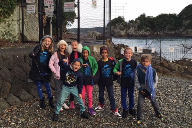 Diese Kids sind mit ihren Lehrern nach Taiji gereist um gegen das Abschlachten und Entführen von Delfinen und Kleinwalen zu Demonstrieren und bleiben für mehrere Tage vor Ort als Cove Wächter, Beobachter und Berichtertatter. Sie hatten schon in ihrer Heimat gegen das Abschlachten und gegen die Versklavung von Walen und Delfinen demonstriert, in dem sie eine Velofahrt organisierten und mit Plakaten und Geschrei darauf hinwiesen. Diese Kinder und Lehrer sind grossartiges Beispiel für die Menschheit, denn sie haben Anstand und Moral.
