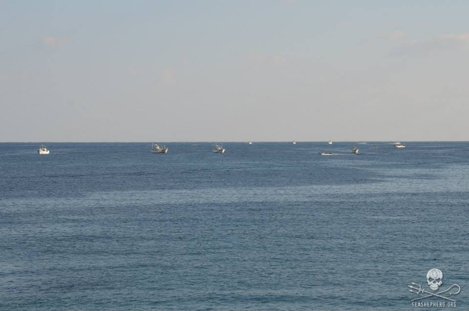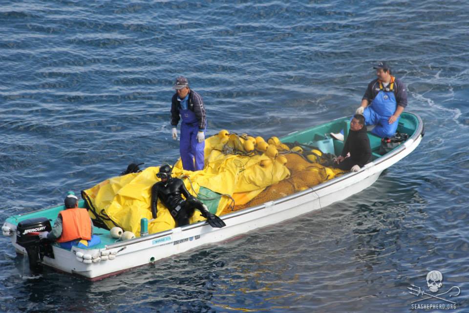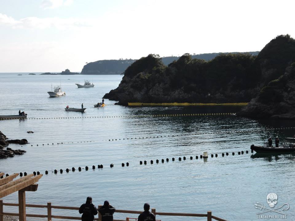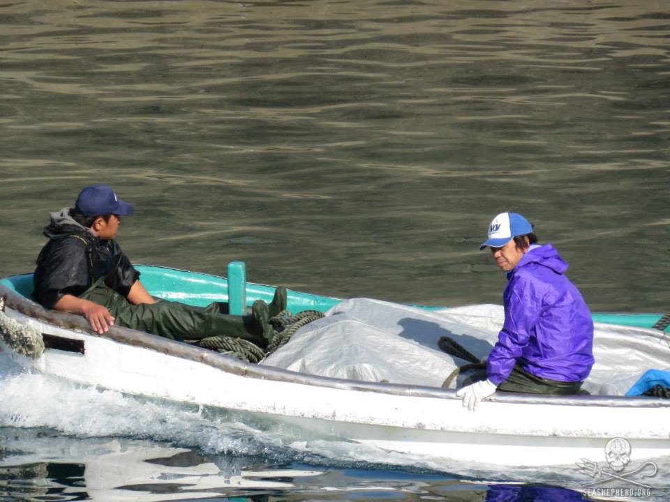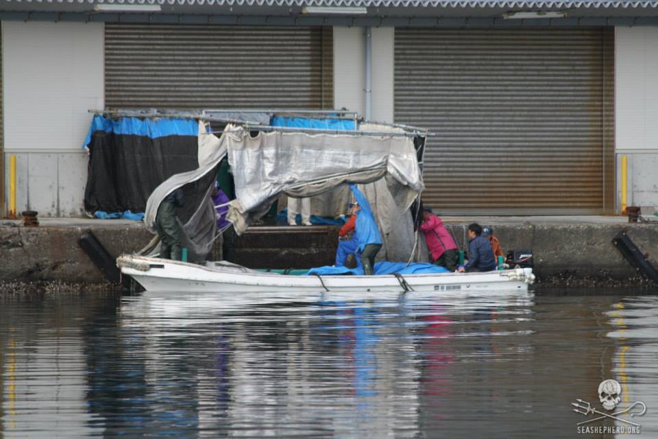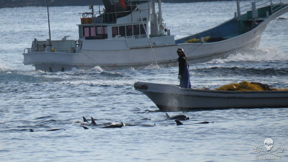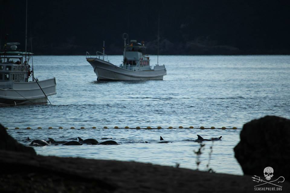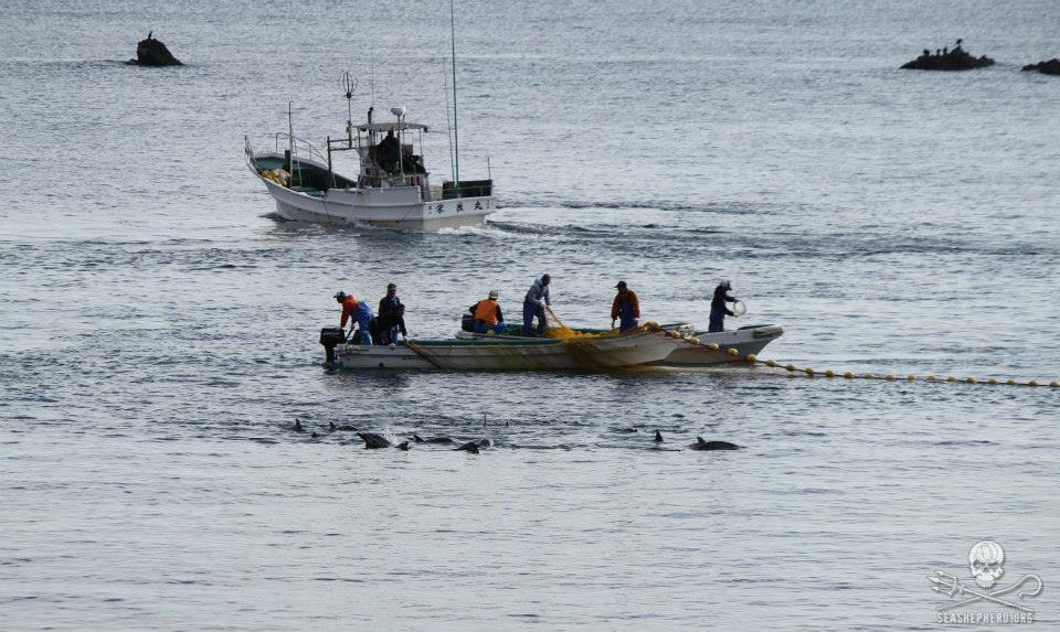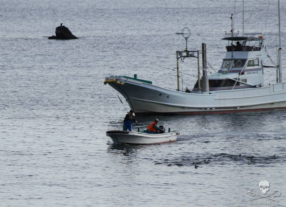 Heute Morgen um ca. 07:40 Japan Ortszeit sichteten die Killer von ihren Booten aus eine Familie unschuldige Streifendelfine.