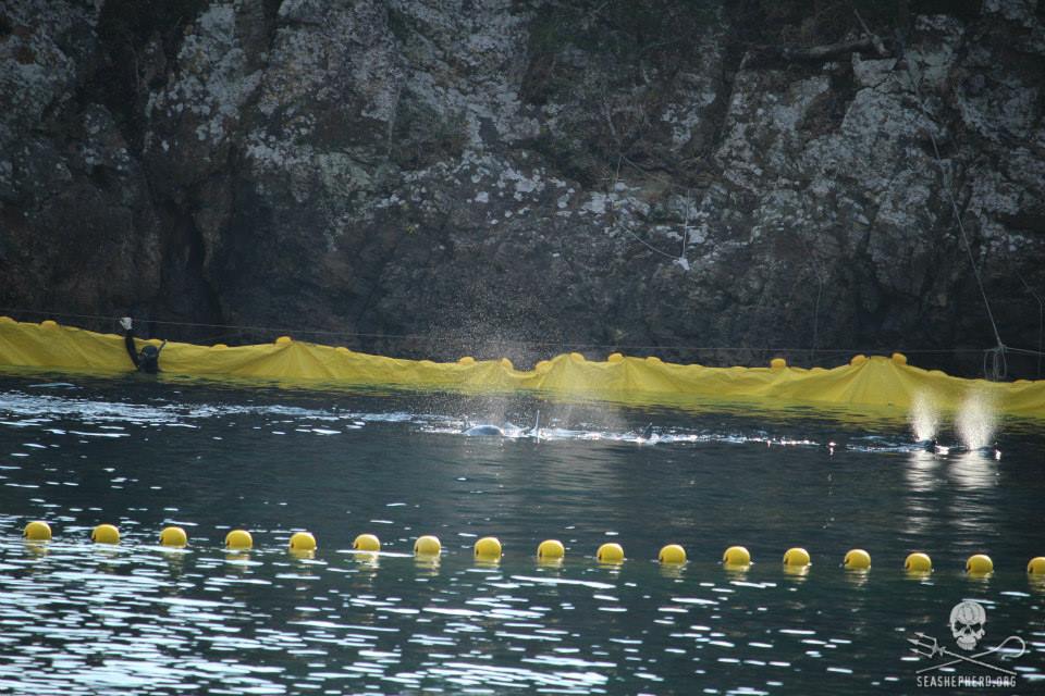 Die Schiffe am Ufer der Mörderbucht geladen mit äusserst brutalen Männern an Bord, zwangen die Delfinfamilie mit Netzen in die Tötung-Bucht, wo bald Terror und Gewalt unschuldiges Leben beendet wird.