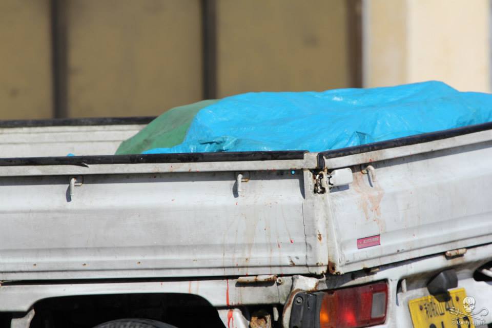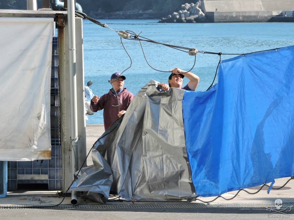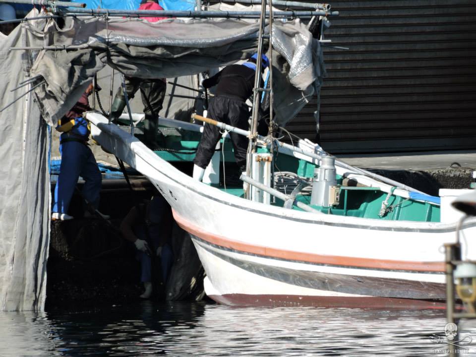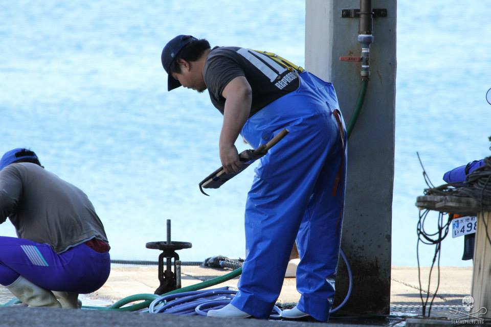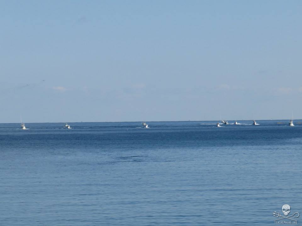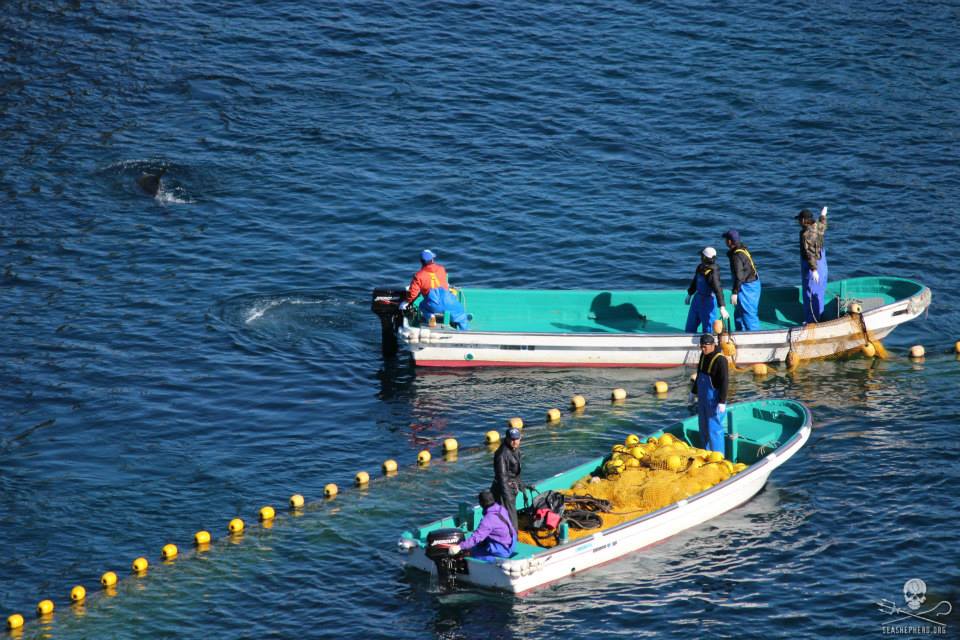 Die Bucht färbt sich wieder rot mit dem Blut unschuldiger Delfine in Folge von zwei Tagen. Um ca. 09.25 Uhr Lokalzeit Japan, entdeckte die Mörderflotte eine Schule von Rundkopfdelfine, verschwendeten keine Zeit um sich zu formieren und die Delfinfamilie endgültigen in den Untergang zu treiben.