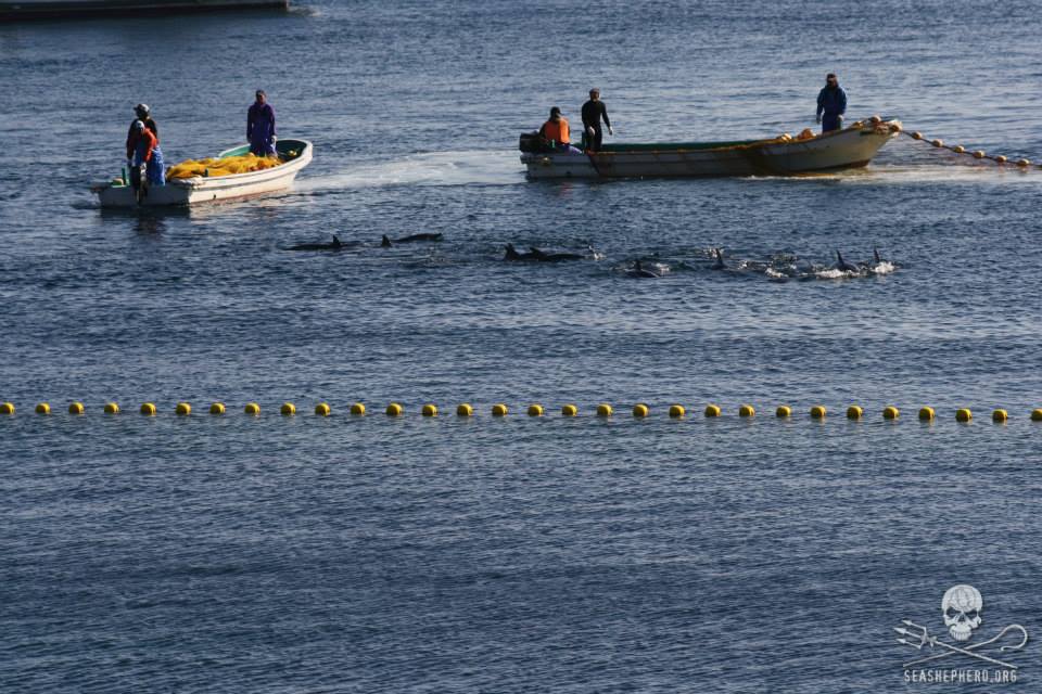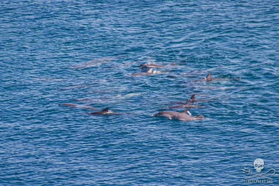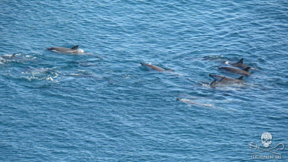 Die Delphine kämpften mit aller Macht um ihr Leben. Die Jagt Flotte teilten die Delfine in 4 Gruppen auf. Drei Delfingruppen gelang die Flucht vor den Jägern, sie konnten zum Glück wieder in die Freiheit schwimmen.