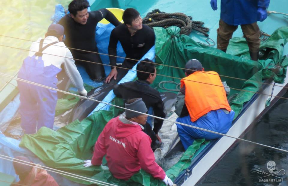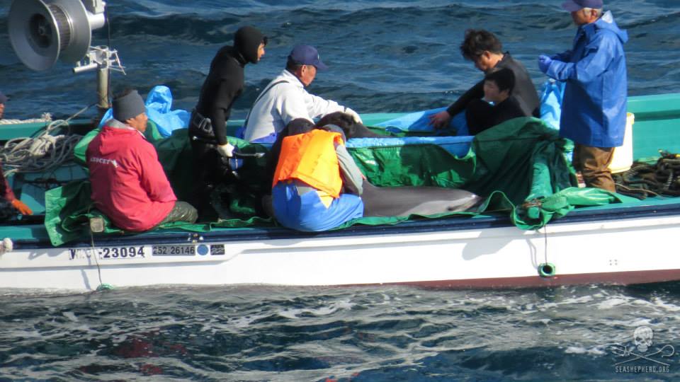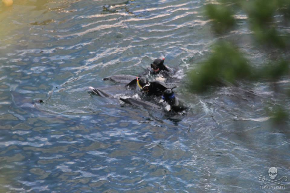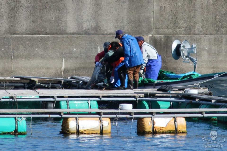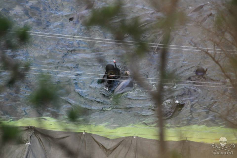 Vier Delphine wurden gefangen genommen und in die Hafen-Käfige überführt, wo sie für viel Geld für Delfinarienshows verkauft werden. Ihr restliches Leben werden sie als Slaven der Menschen in Gefangenschaft verbringen, psychisch gezeichnet seit dem schrecklichen Erlebnis als ihre Familienmitglieder vor ihren Augen schreiend und brutal abgeschlachtet wurden.
