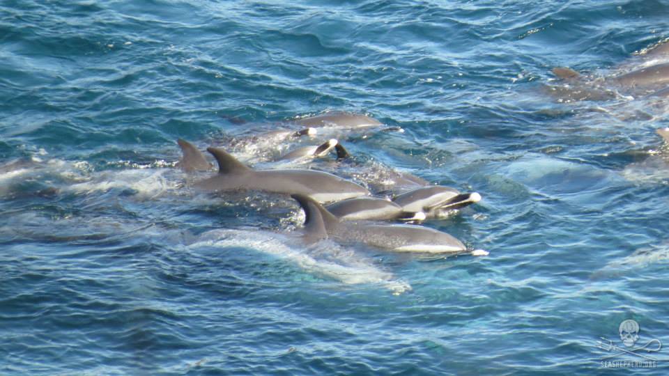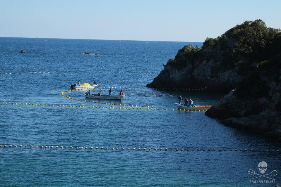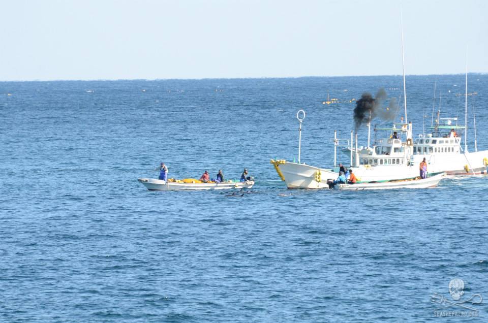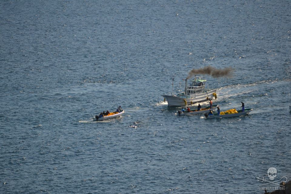 Heute Morgen verliessen 12 Mörderboote den Hafen von Taiji auf der Suche nach unschuldigen Delfinen. Um 9.00 Uhr morgens Lokalzeit entdeckten die Mörder eine grosse Herde gepunkteter Pantronic Delfine. Die Delfinmörder kapselten die Herde für mehr als 2 Stunden ein um diese Familie von ca. 80 Delfinen in die Bucht zu treiben.