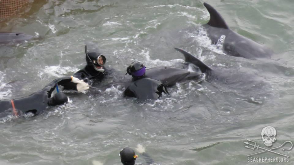 15 Traumatisierte und verletzte Junge- und Baby-Delfine wurden nach der Tortur der Gefangennahme, des Abschlachtens und Entführens aufs Meer hinaus getrieben und somit entsorgt, weil sie für die Mörder wertlos sind, weder für Fleisch noch für die Gefangenschaft. Die jungen Delfine wollten zuerst durch die starke Familienbindung trotz der grausamen Erlebnisse die Bucht nicht verlassen, dann wurden sie mit den Botten hinaus gehetzt und wahrscheinlich auch einige durch überfahren verletzt oder getötet. Die meisten von ihnen werden ohne den Schutz ihrer Eltern und ohne Muttermilch grausam Verhungern und sterben.