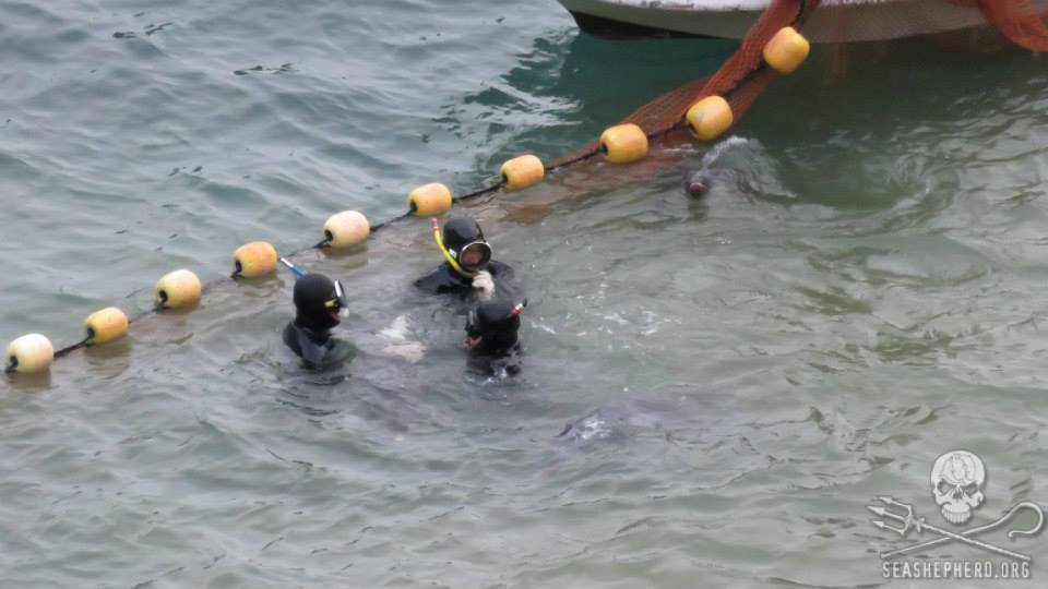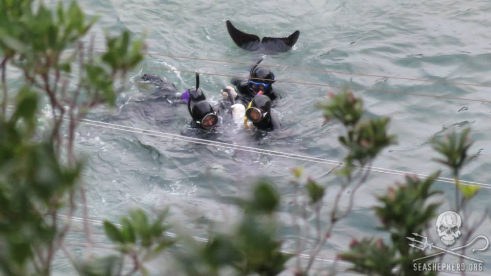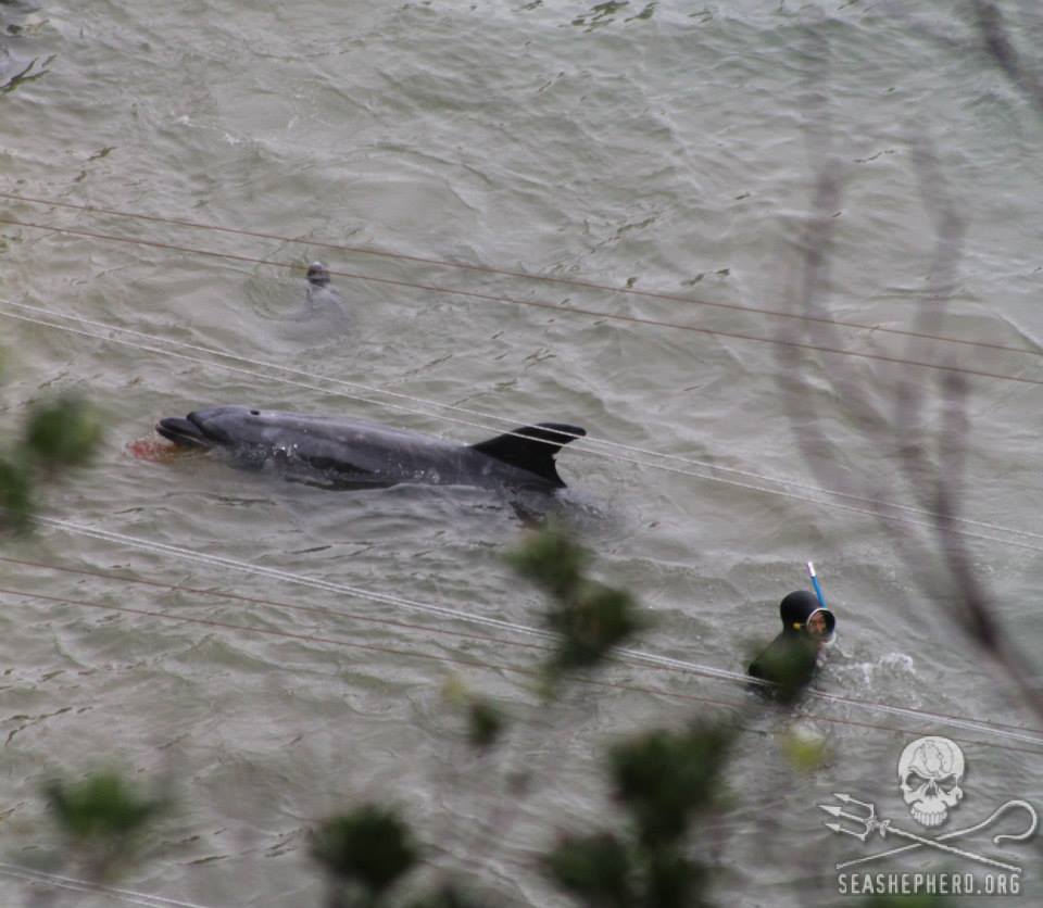 Viele verängstigte Delfine verfingen sich in den Netzen und verletzten sich dadurch oder ertranken. Wir müssen davon ausgehen, dass einig Delfine, vor allem Babys durch den Gewaltakt ertrunken sind.