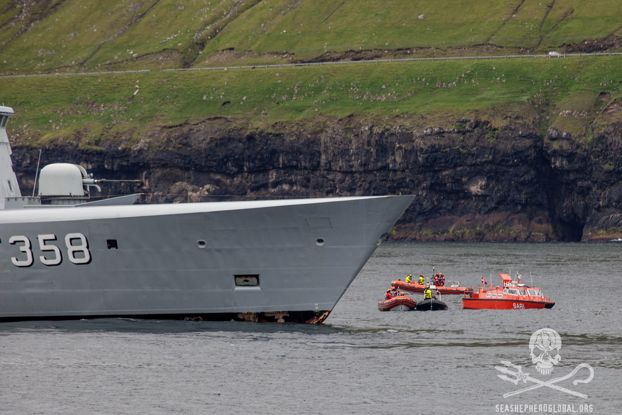 Die beiden Crewmitglieder die von der dänischen Marine festgenommen wurden, sind Marianna Baldo aus Italien und Xavier Figarella aus Korsika. Sie haben das Gesetz, sich den Walen nicht dichter als eine Meile zu nähern, nicht gebrochen. Sie waren über 2 Meilen entfernt als sie festgenommen wurden. Die Marine behauptet, dass sie das Recht hatten, die Distanz auf 2 Meilen auszuweiten um die Verhaftung zu rechtfertigen. Die dänische Marine verteidigt sehr aggressiv die Walfänger. Die Brigitte Bardot wird nun von der Triton und dem Kriegsschiff Knut Rasmussen blockiert. Susan Larsen (USA) und Tom Strerath (Deutschland) sind offenbar immer noch nicht aus dem Gericht entlassen.