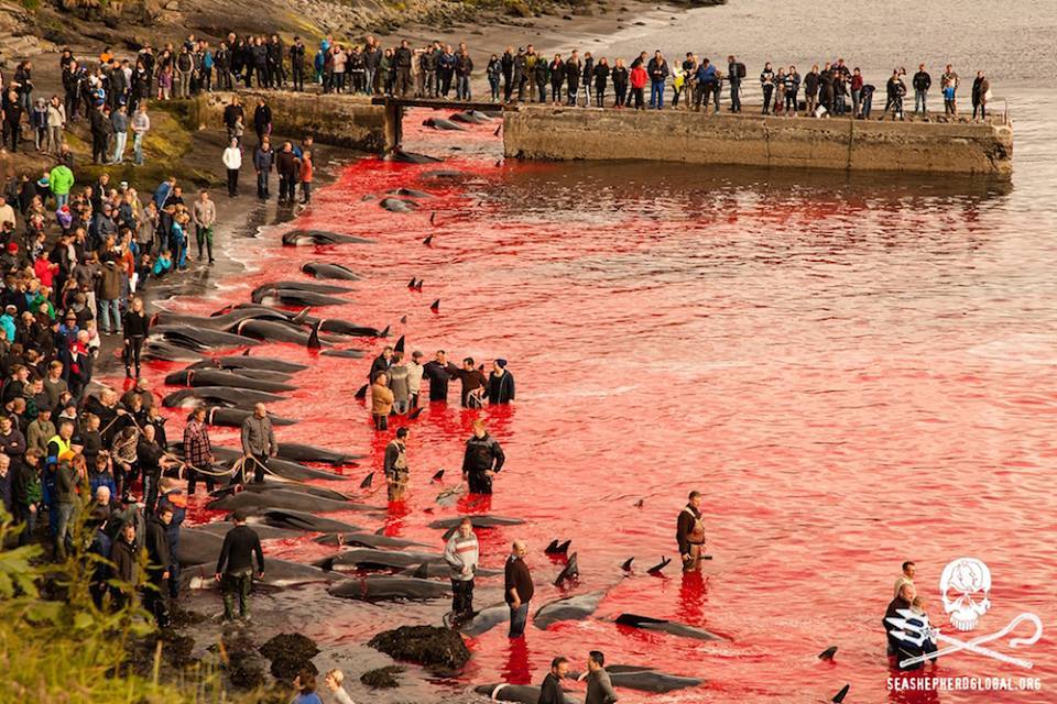 Update: Insgesamt wurden 250 Grind- oder auch Pilotwale genannt abgeschlachtet, an zwei verschiedenen Orten am selben Tag!!