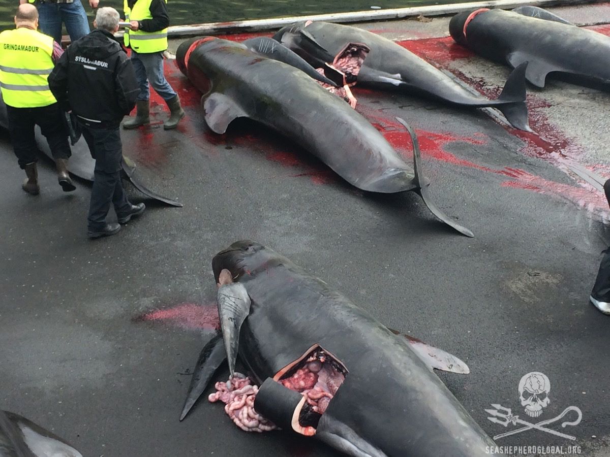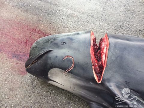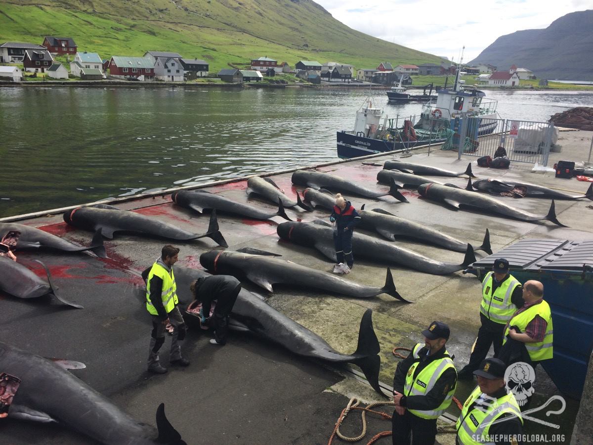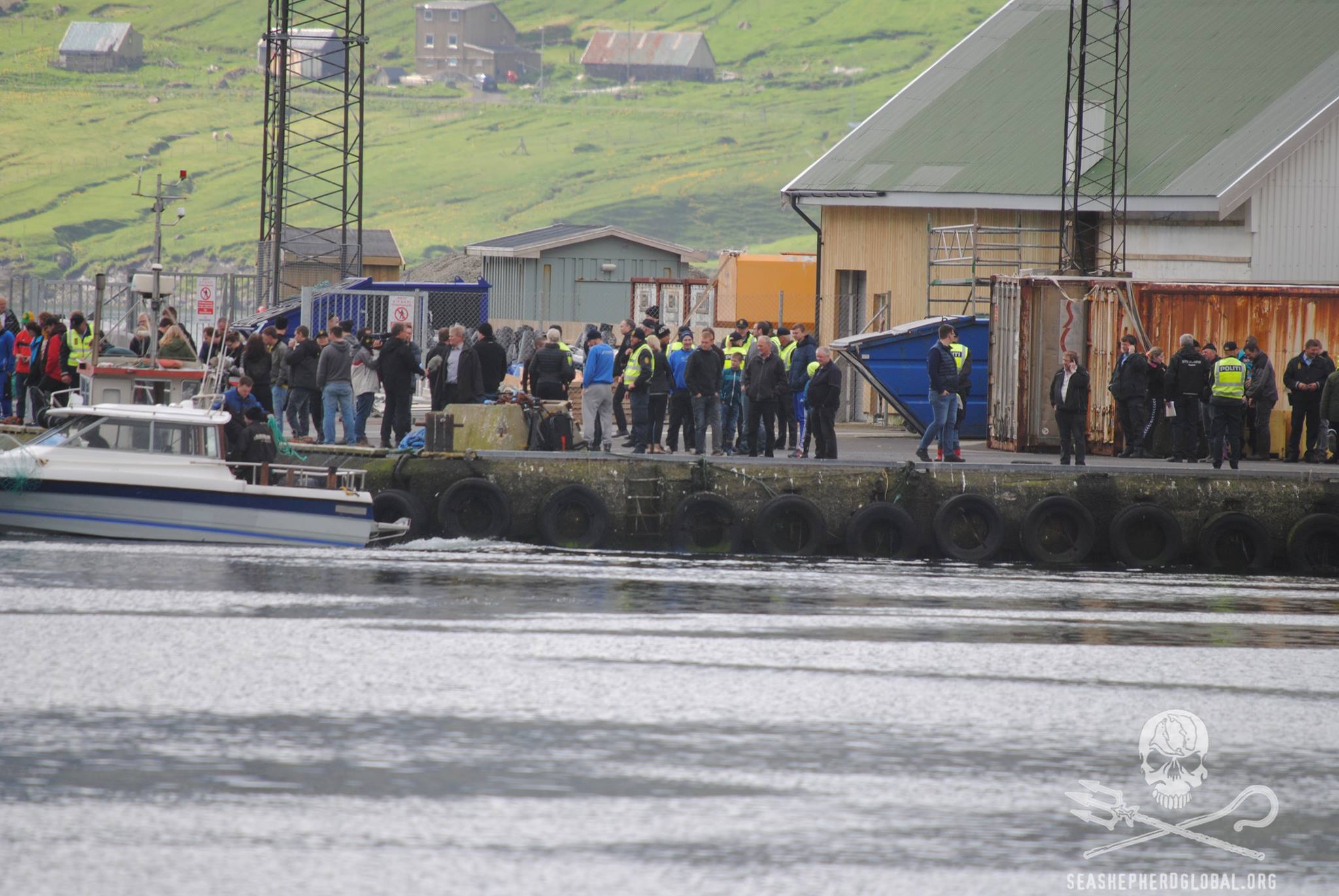 Zwei Sea Shepherd Freiwillige waren in der Lage, die berüchtigte Treibjagd aus der Entfernung zu filmen. Sie hielten sich dabei außerhalb der Verbotszone von einer Seemeile um den Ort der Abschlachtung auf. Später konnten weitere Freiwillige schockierende Fotos von den Auswirkungen des Abschlachtens machen.