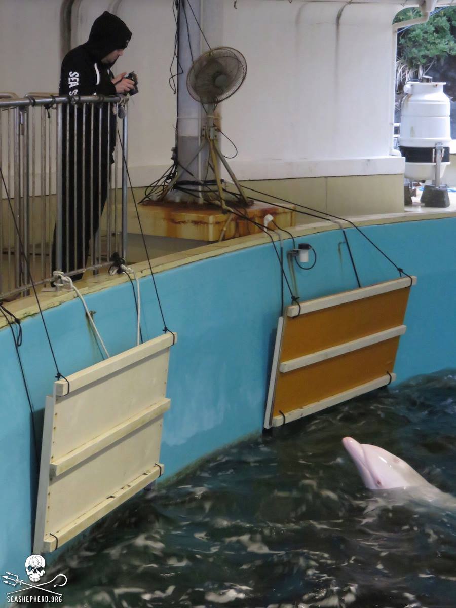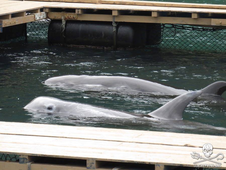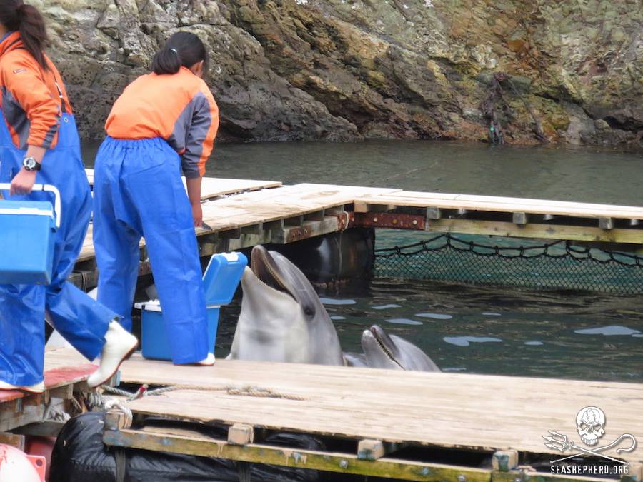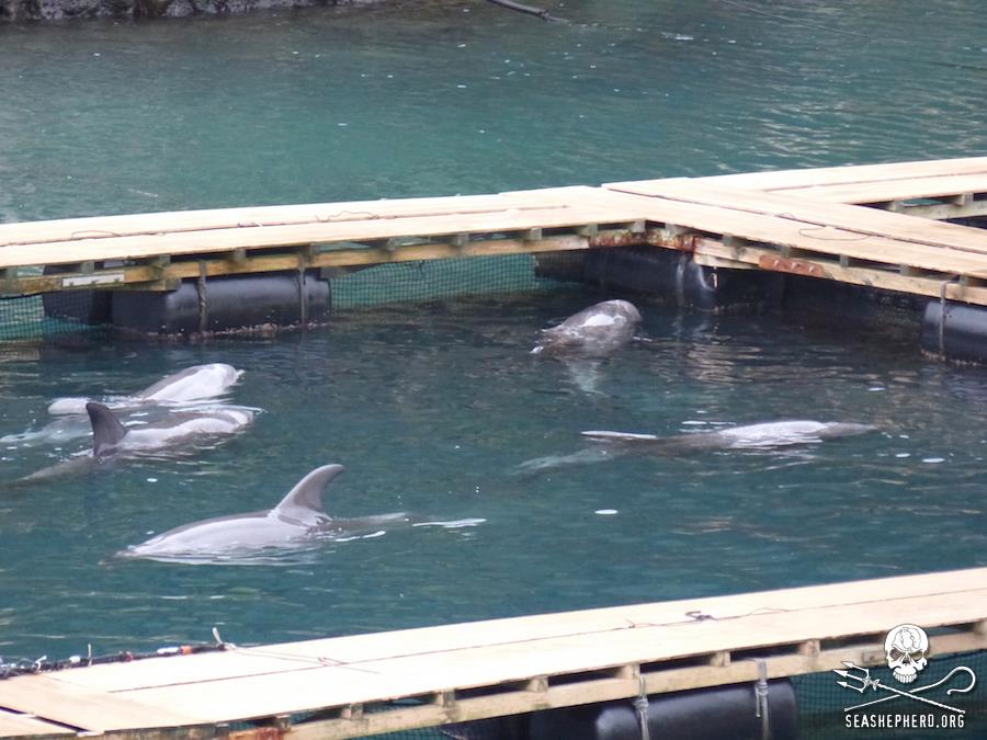 Am 4. März 2015 gelang es den Sea Shepherd Cove Guardians einige Bilder von den in Taiji gefangenen Delphinen zu schiessen, viele dieser Delfine leiden schon über einem Jahr in den Gefängnissen.