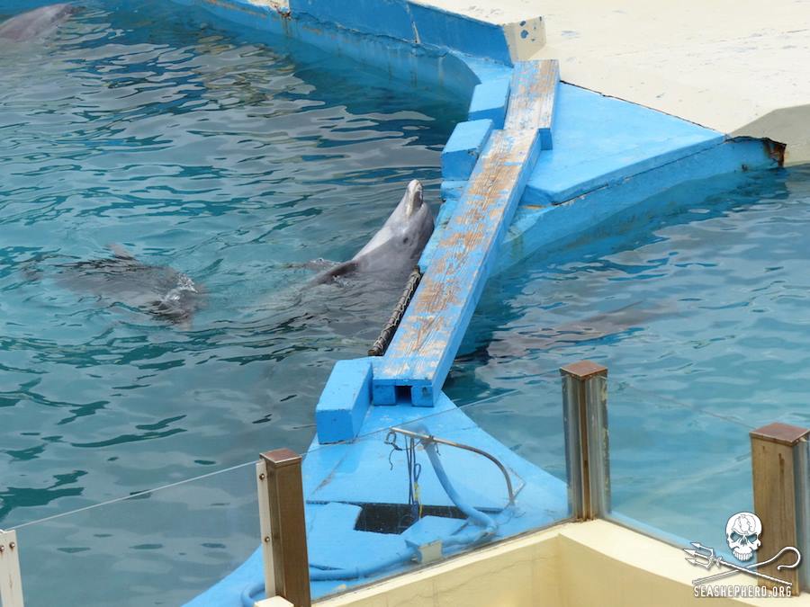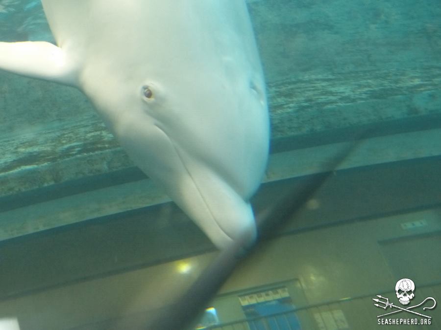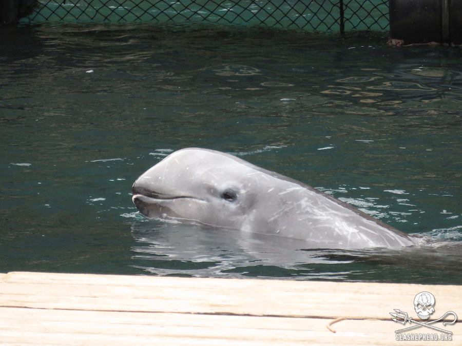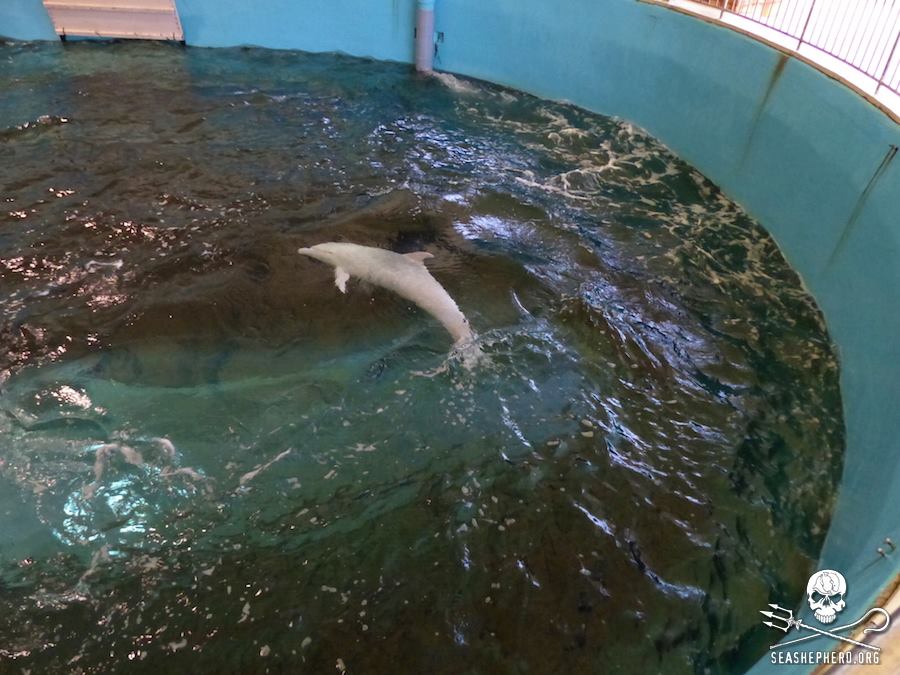 Diese Delfine sind einsame Überlebende die miterleben mussten wie ihre Familienmitglieder brutal abgeschlachtet wurden, nun schwimmen sie eng eingeschränkt in kleinen Chlortanks oder in kleinen Schwimmkäfigen im Hafen von Taiji.