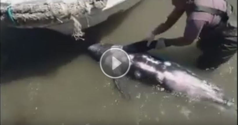 In pure panic the Dolphins have started beaching themselves on the rocks in the public part of the cove. 10:31am #tweet4taiji