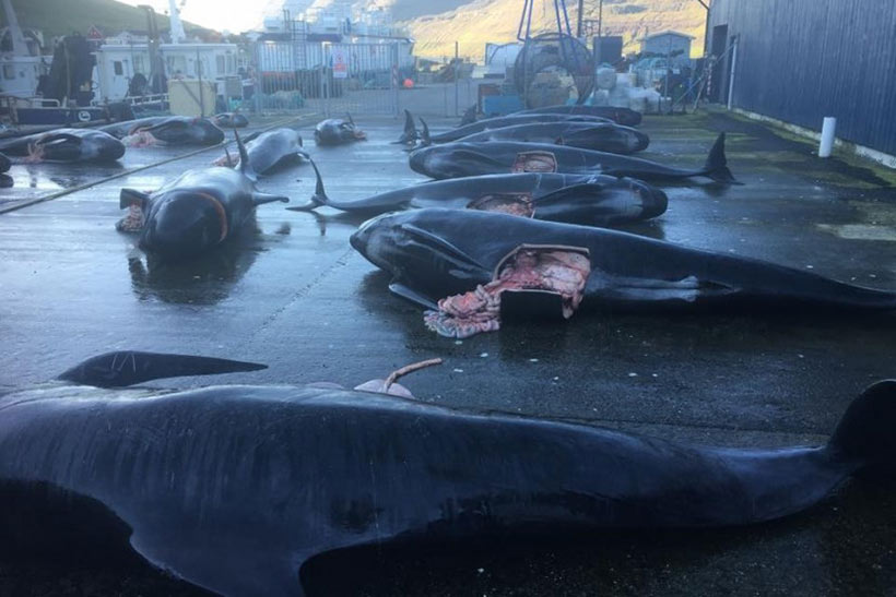 Gestern am 5. August 2017 fanden auf den Färöer Inseln drei barbarische Waljagden statt. Eine Schule von über 100 Weissseiten Delfine wurde bei Funningsfjörður abgeschlachtet, eine Schule von etwa 40 Grindwalen in Hvannasund, eine seltene Nördliche Entenwal Familie belästigt.