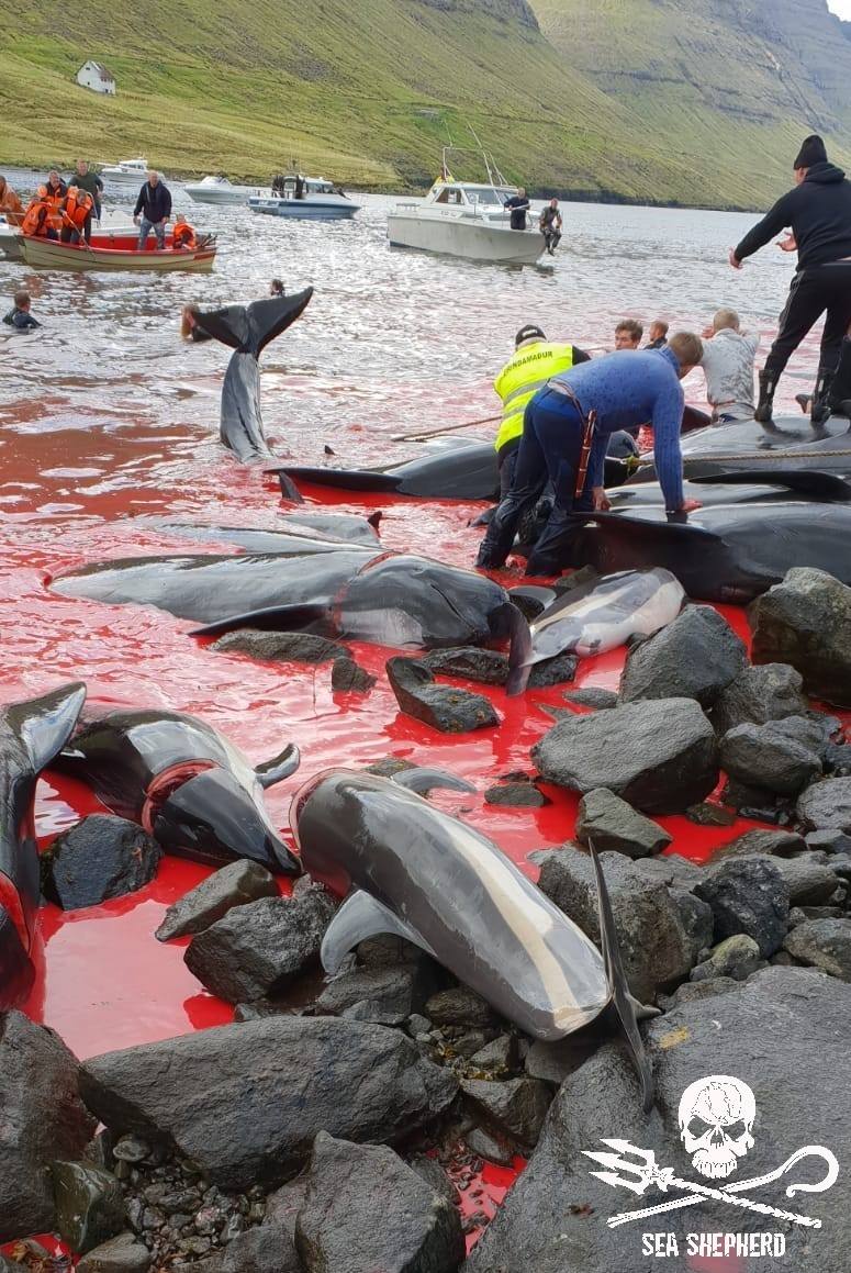 Das sadistische Massenschlachten von Grindwalen und anderen Delfinarten auf den dänischen Färöer Inseln ist barbarisch und im 21. Jahrhundert inakzeptabel. Es gibt keine Rechtfertigung für diese Brutalität, und die „Menschen“ auf den Färöern, die an dieser fortwährenden Gräueltat teilnehmen und diese unterstützen, sind Wilde ohn Einfühlungsvermögen und Mitgefühl.