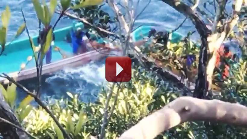 Ein in Panik geratener Risso’s Delfine wollte zwischen zwei Booten durch das Netz in die Freiheit flüchten, er zog mit seinem Kopf fast das Netz mit sich. Ein Taucher und sagenhafte drei Killer zusammen gaben sich die grösste Mühe diesen Delfin aufzuhalten, was ihnen erst nach etwa zehn Minuten gelang. Erfreulich war zu sehen, dass dieser Delfin mit seiner Schwanzflosse dem Taucher eine saftige Ohrfeige verpasste. Doch die Freude hielt nicht lange, aggressiv und wütend band der Taucher dem Delfin ein Seil um seine Schwanzflosse und die ebenfalls wütenden Monster auf dem Boot zogen diesen Delfin mit voller Startgeschwindigkeit unter die Planen, wo er barbarisch ermordet wurde.