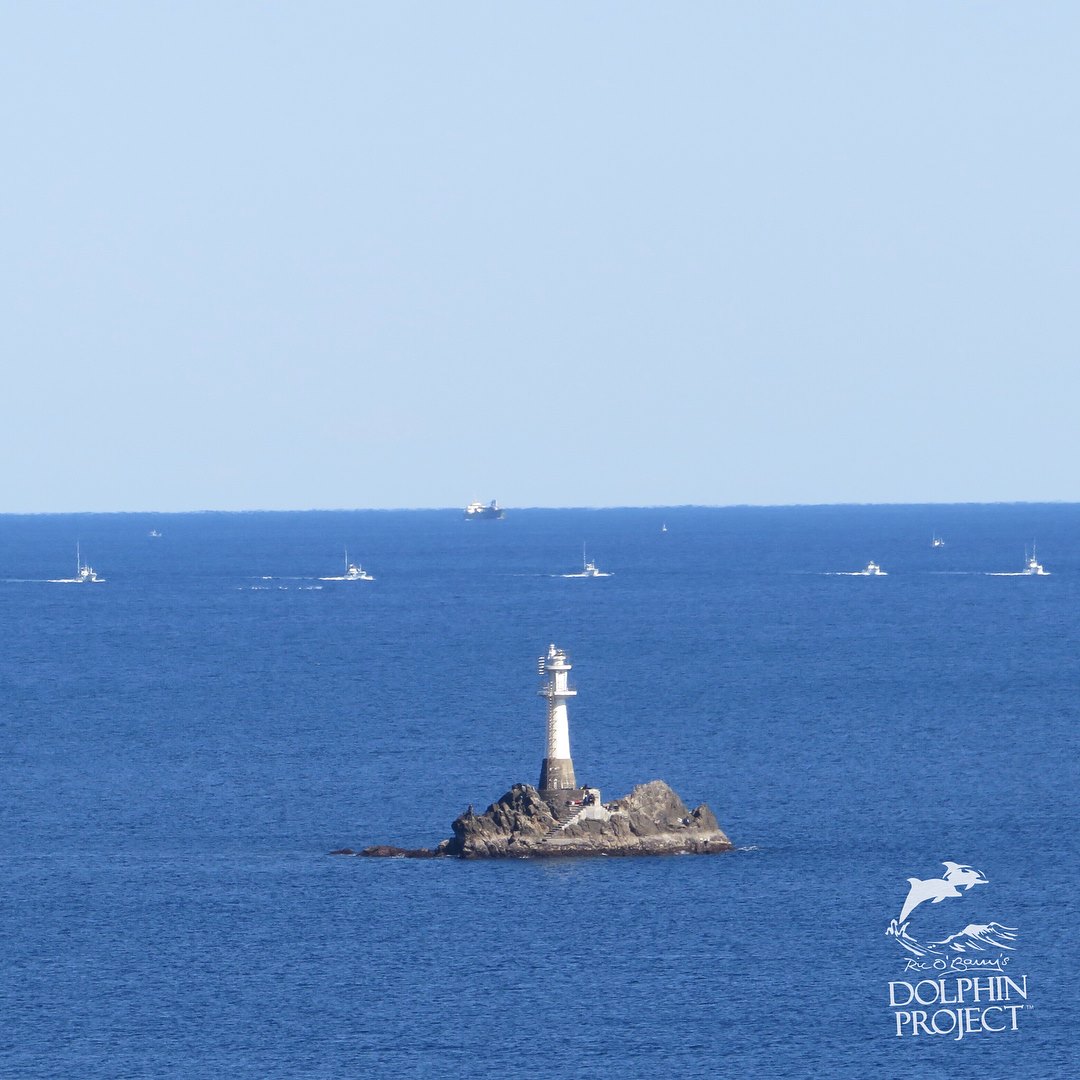 Eine zweite Treibjagt ereignete sich heute in Taiji, eine weitere aber unbekannte Delfin Spezies wurden von den gleichen Killer wie zuvor in Richtung bucht getrieben. Diese cleveren Delfine schwammen unter den Booten hindurch und steuerten Richtung Meer hinaus. Die schnellen Jagdboote verfolgten die Delfine, die Delfine drehten sich und schwammen direkt auf ein Fischernetze zu; sie waren zwischen den Mördern und dem Netz gefangen. Die Killer zogen Netze um die Delfine herum und finge wutentbrannt diese Delfine abzuschlachten. Vermutlich rammten die Killer den Delfinen Hacken in die Bäuche um sie einzufangen, wie bei Tunfischen, wie schon unter den Planen in der Bucht beobachtet wurde oder bewarfen sie mit Speeren wie bei der sonstigen Delfinjagd das ganze Jahr über. Dieses barbarische Verbrechen geschah weit draussen auf dem Meer, weit weg vor den Augen der Öffentlichkeit.