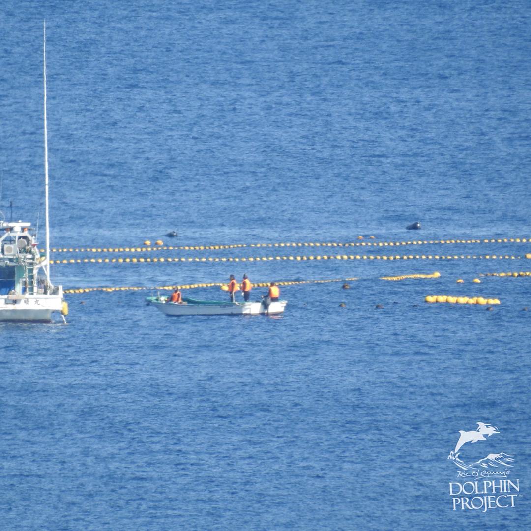 Fünf Familienmitglieder inklusive das Baby wurden für die Gefangenschaft entführt, an die Seiten der Boote gefesselt und so zum Hafen von Taiji in die Schwimmgefängnisse abtransportiert. Drei Delfine blieben zurück die für die Gefangenschaft ungeeignet betrachtet wurden - vielleicht zu alt, vielleicht nicht hübsch genug. Diese drei Delfine wurden erneut terrorisiert, die Killer trieben sie mit den Jagdschiffen wieder aus der Bucht in den Ozean hinaus, ohne ihre fünf Familienmitglieder, ohne ihr Baby.