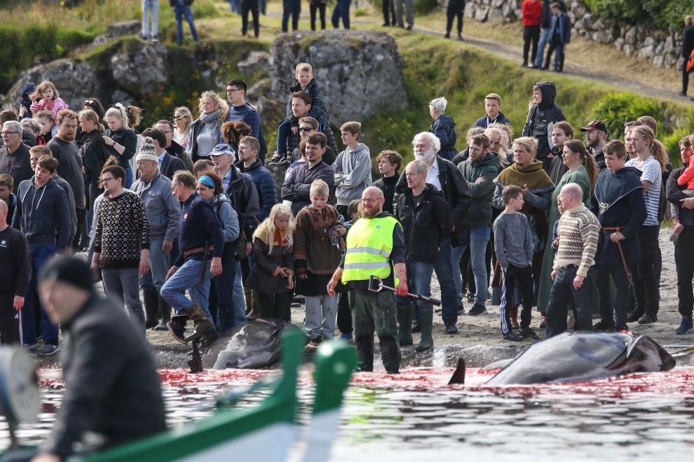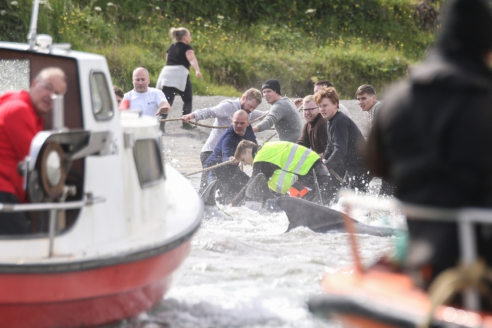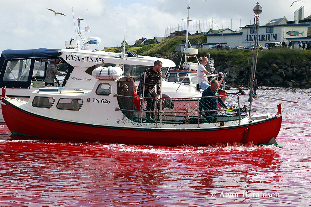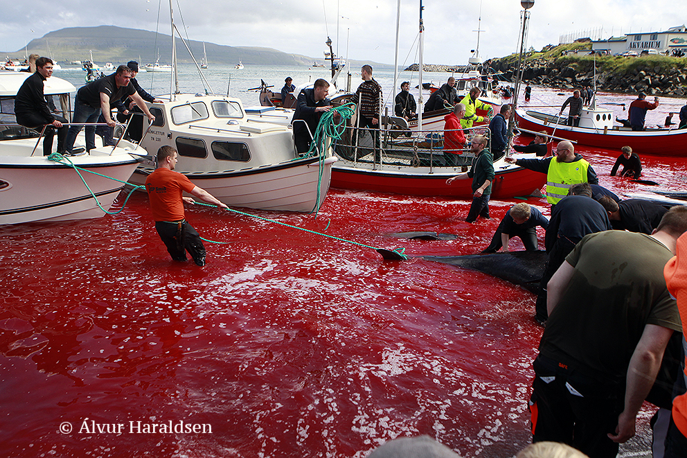 In Tórshavn wurden heute Nachmittag 51 Grindwale getötet, berichten mehrere färöische Nachrichtenseiten. Finnbogi Midjord, der örtliche Sheriff, erklärt gegenüber der färöischen Nachrichtenseite Portal.fo, "dass die Morde am Sandagerði Strand gut verlaufen sind. Es (die Morde) begann um 14.36 Uhr und um 14.51 Uhr war alles vorbei. Ich denke, es waren ungefähr 50 Wale , sagte Midjord und fügte hinzu, dass viele Menschen an den Tötungen teilnahmen - sowohl auf Booten als auch am Strand."