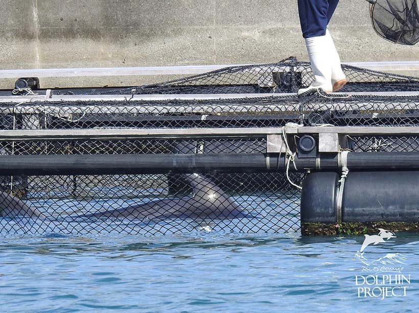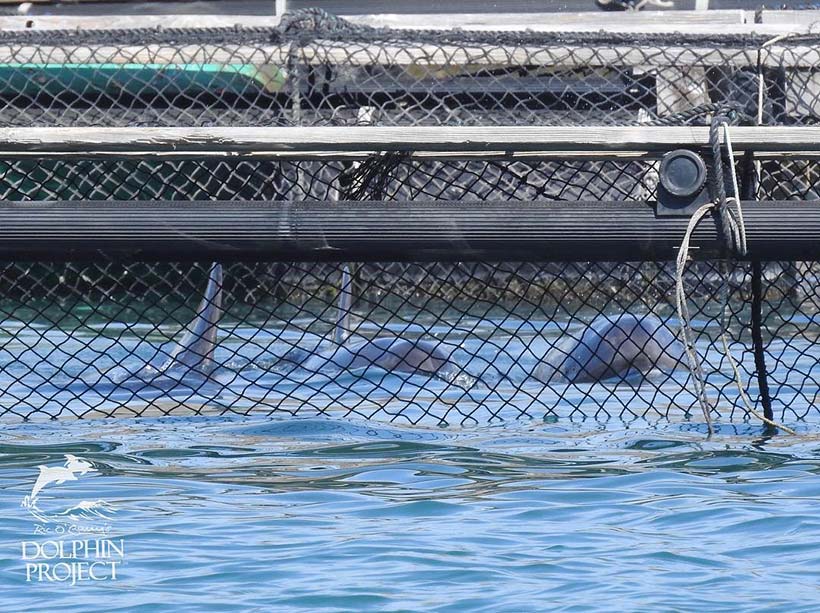 Sechst dieser entführten Delfinkinder werden in Moriura Bay in den Käfigen mit vielen anderen Delfinen gefangen gehalten, wo es schwierig ist sie zu gesicht zu bekommen oder sie von den anderen Gefangenen auseinander zu halten.