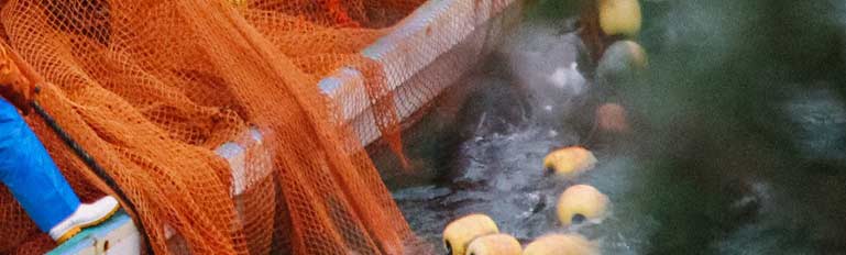 Bild: Nach der vierstündiger brutaler Treibjagd durch 12 grosse Jagschiffe die erschöpften Rissos Delfine in völliger Panik hinter dem Netz eingesperrt