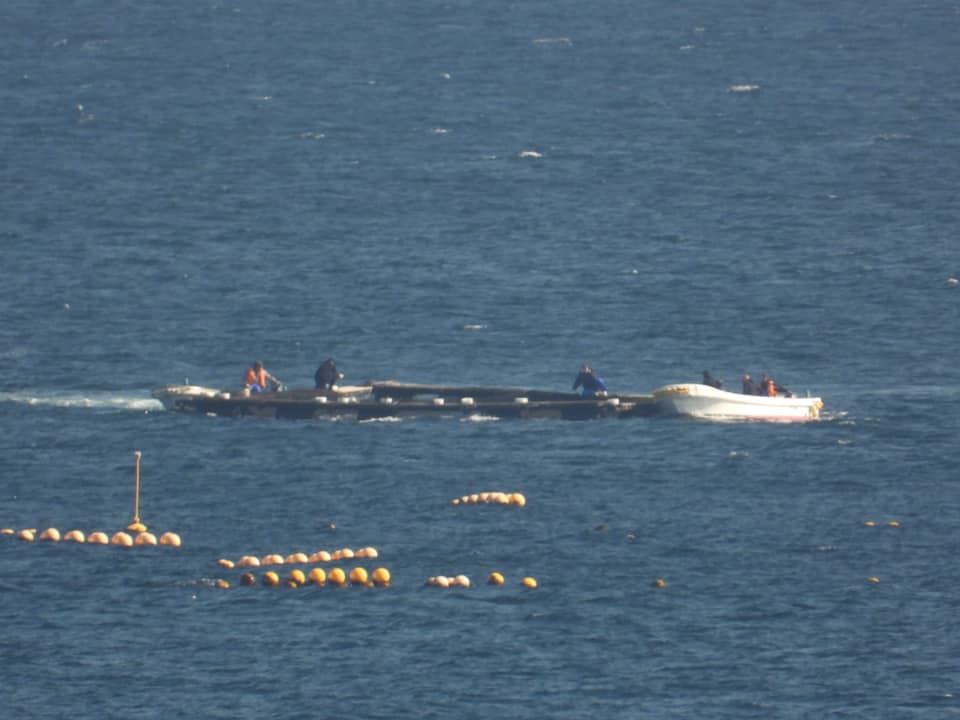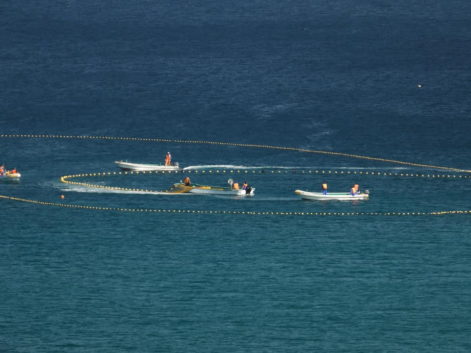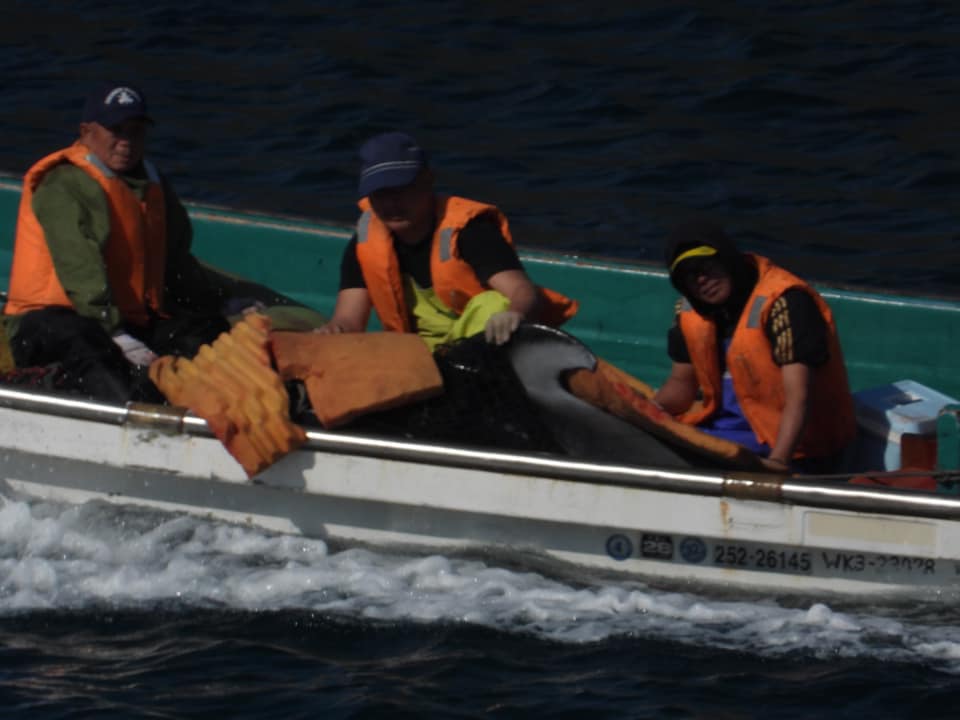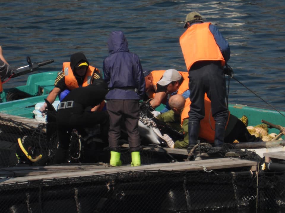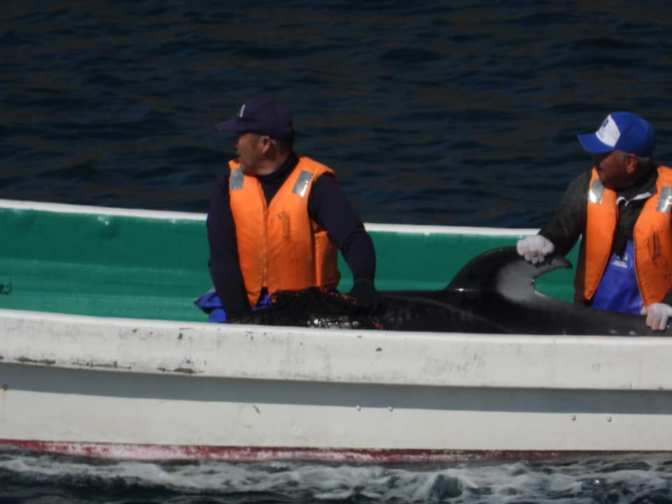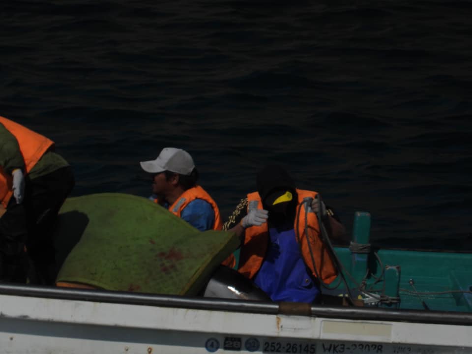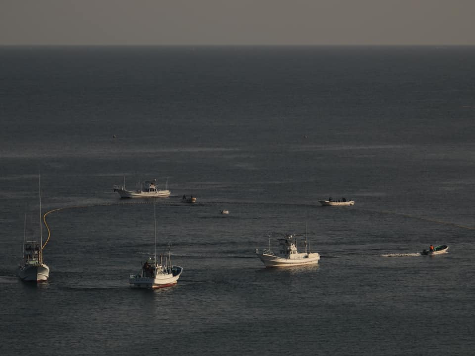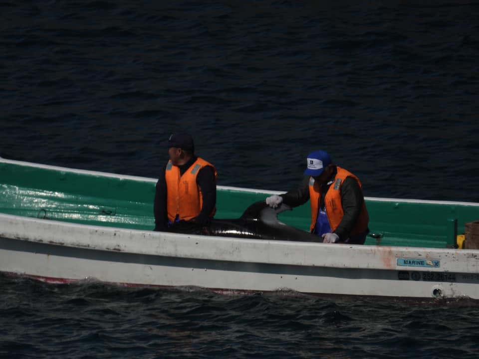 Ein paar wenige Delfine wurden offshore, etwa 600 Meter draussen vor der Bucht mit einem Netz eingekreist. Im Hintergrund sahen wir in Kunito’s Livestream die grosse Gruppe in Richtung Ozean flüchten. Nach erster Einschätzung könnten über 50 Weissseiten Delfine im Netz eingesperrt sein. Wie viele es aber wirklich sind und wie viele von ihnen für die Delfinindustrie entführt werden, erfahren wir erst später.