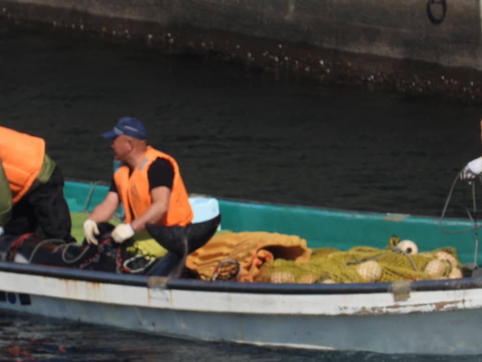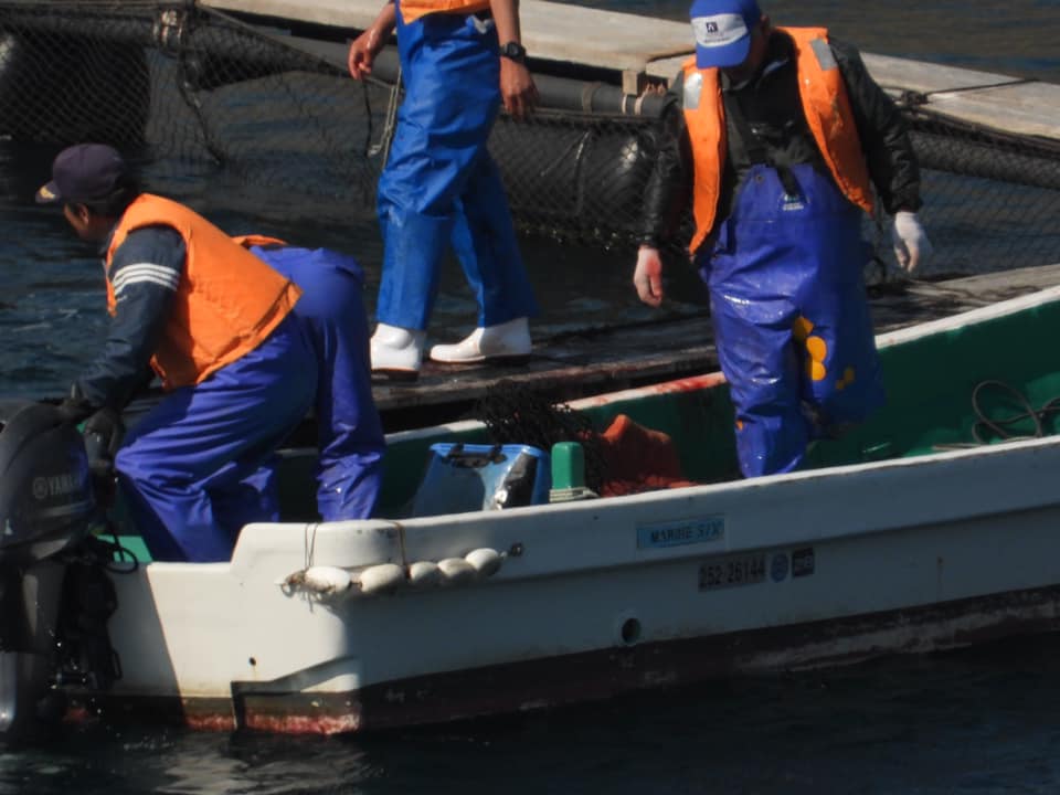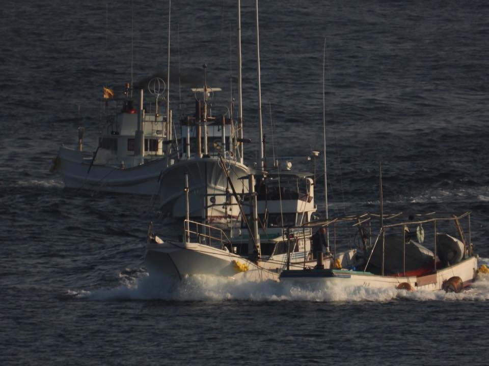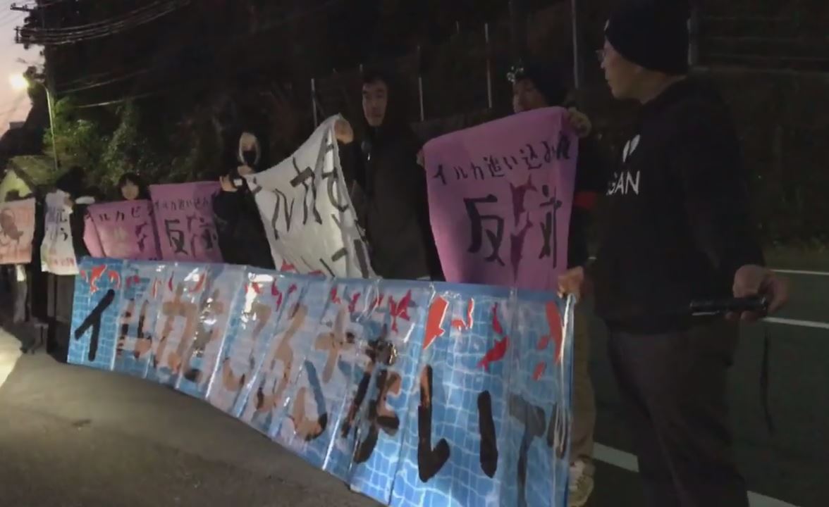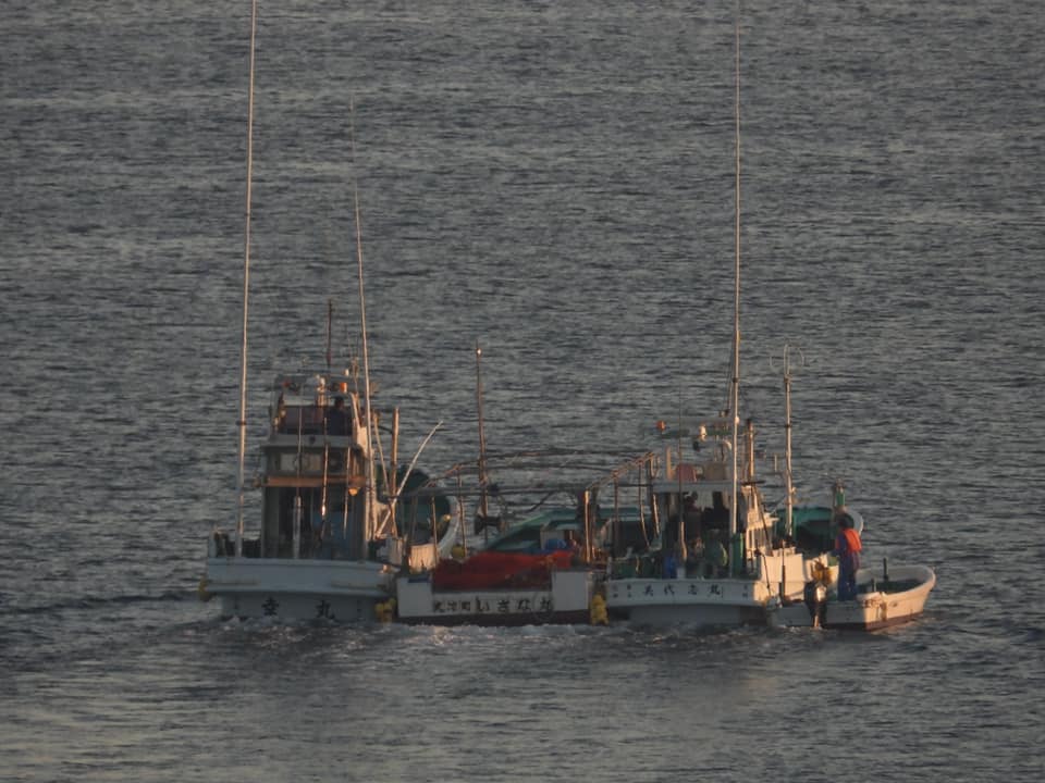 Gestern, und heute sind noch mehr japanische Aktivisten in Taiji vor Ort, schreien heftig und andauernd durch Grammophone, übersetzt «Lass die Delfine gehen, lass sie in Ruhe». Einige Jagdschiffen waren schon in den Hafen gefahren, brach plötzlich bei den noch verbleibenden 8 und 6 Booten mit Tauchern und Entführern Hektik auf. Es sah zuerst so aus, als wären die Delfine geflüchtet. Das grosse Schiff, an das der Zwergwal Hope an der Schwanzflosse gefesselt und ertränkt wurde, hat das Netze heute vor den Delfine ausgelegt. Was wiederum bestätigt, dass die Fischer und Delfinjäger ein und derselbe Abschaum sind, nämlich Mitglieder der japanische Delfinmafia der Fishery Union ISANA.