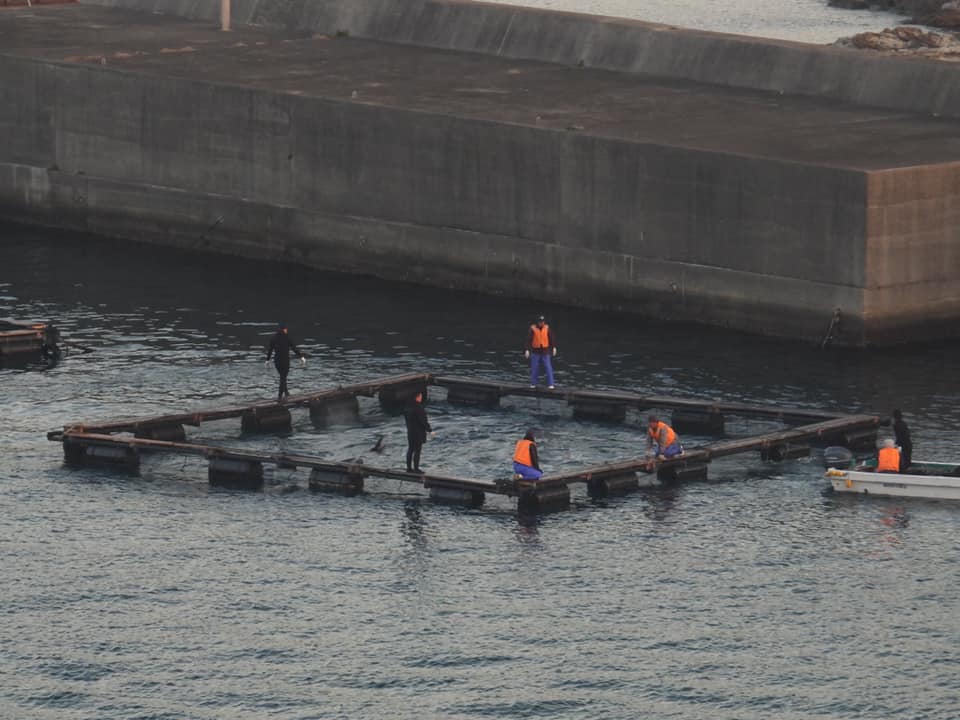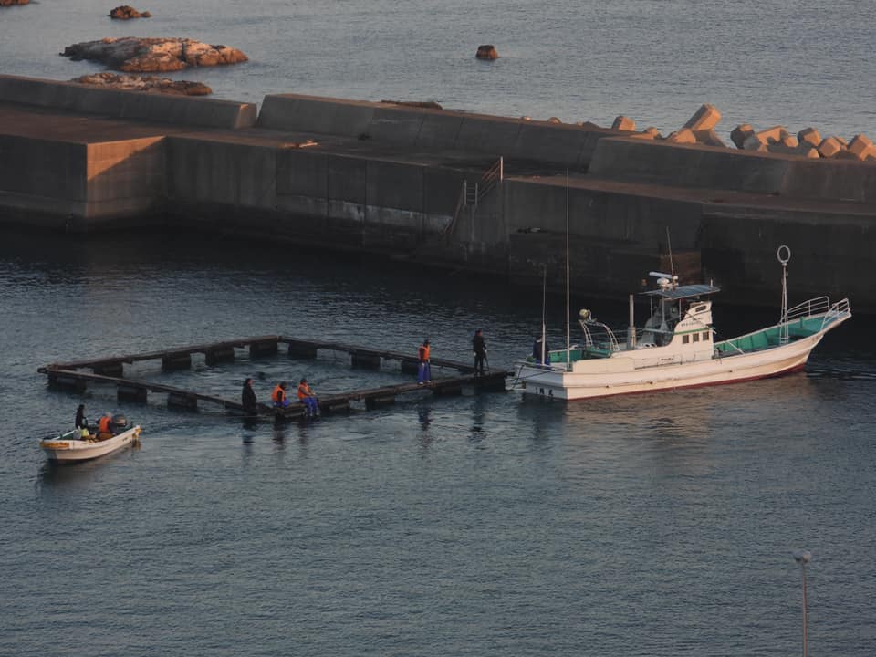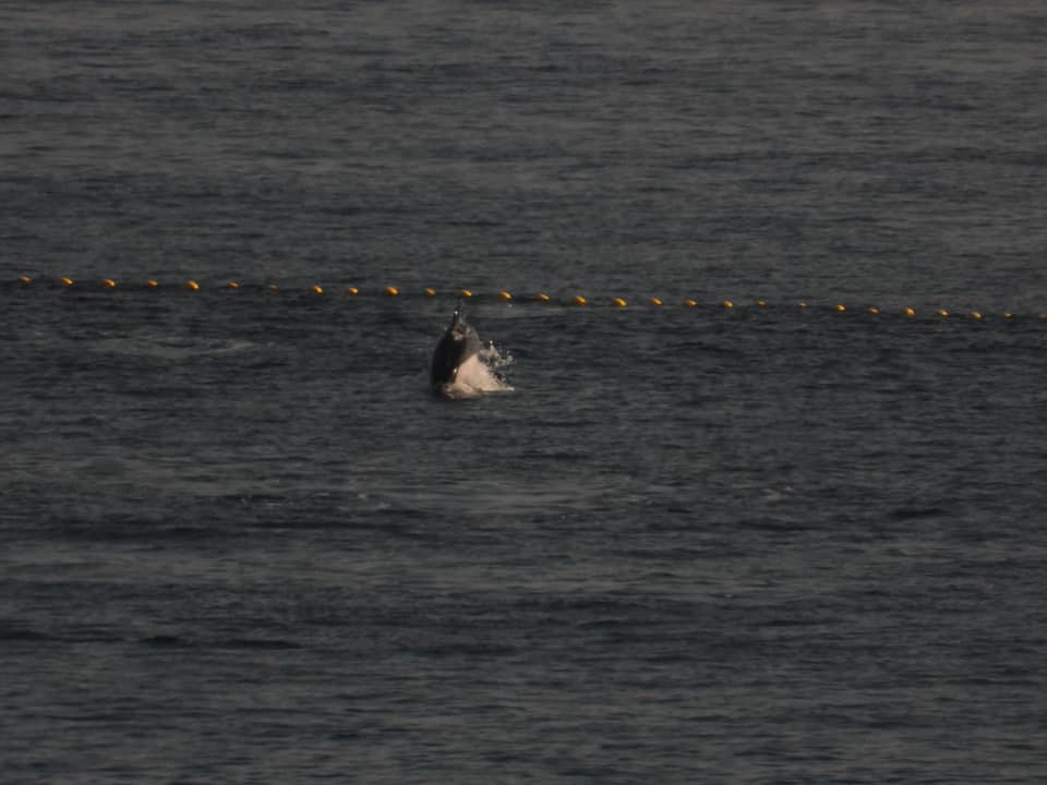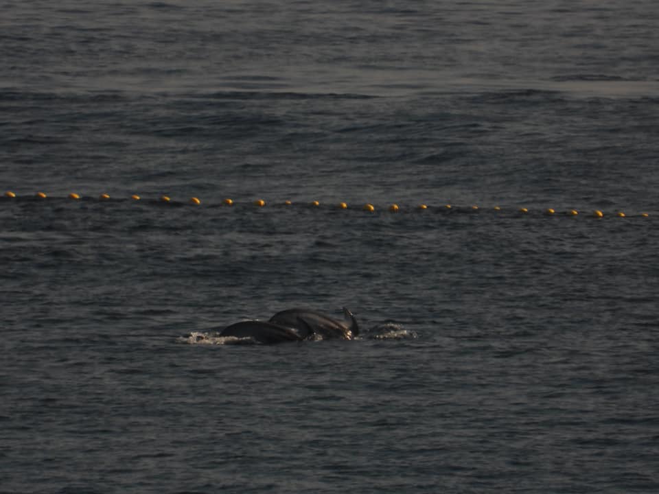 Vermutlich warfen sie verletzte und grosse Delfine in diesen Käfig um bei einer zweiten Selektion ein paar heraus zu nehem. Es ist aber durchaus denkbar, dass auf dem Boden des Netzes tote Delfine liegen, die die Gewalt nicht überlebt haben und an den Fogen der Verletzungen starben. Wir vermuten die Killer entsorgen verletzte, tote und zu grosse/alte Delfine aus diesem Käfig im Meer. Kunito hatte sie gefilmt wie dieser Abschaum weit draussen die Netze öffneten und danach mit grösserer Geschwindigkeit den Käfig wieder zu den anderen im Hafen brachten. *Bilder in der Bildergalerie zugefügt