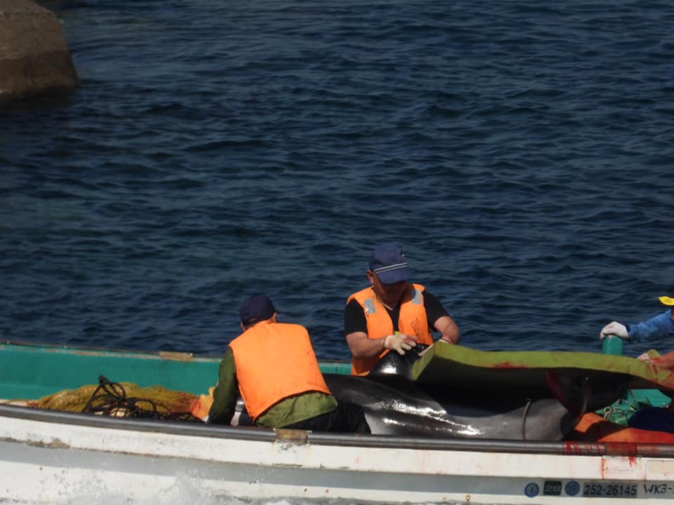 Die Jagschiffe sind heute 22. Februar nicht hinausgefahren um Delfine zu terrorisieren, ein anderes Nach-Verbrechen zu gestern fand heute statt. Viele Menschen wunderten sich wieso die Killer mit einem Schwimmkäfig voller wertvoller Weisseiten Delfine zur See hinausfahren die gestern brutal und mit grösster Gewalt entführt wurden. Die Antwort habe ich sofort gewusst, sie entsorgten schwerverletzte Delfine auf See, die so schwer verletzt sind, dass ihre Chance zu überleben gering ist.