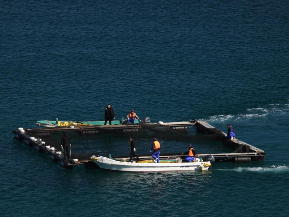 Bild: Ein gerade eben gewrestleter entführter Delfin wird zu den Schwimmkäfigen im Hafen transportiert